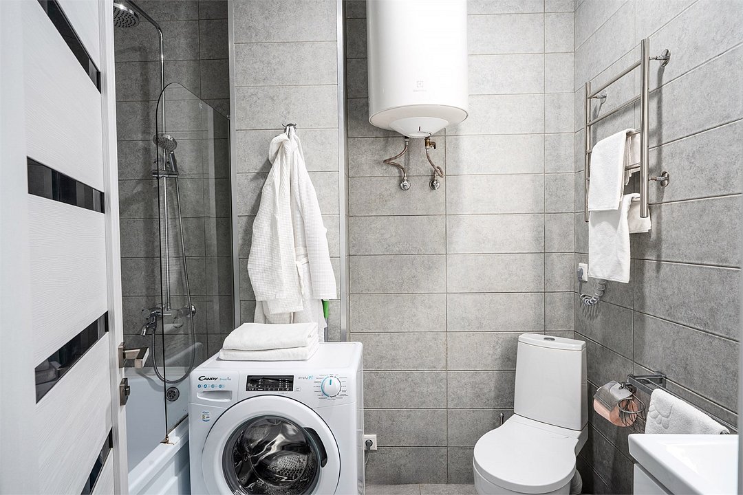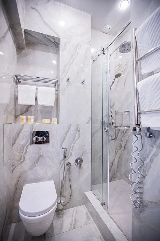 Wi-Fi, холодильник, электронные замки, микроволновая печь, утюг, душевая кабина, банные принадлежности, халаты, тапочки, гигиенические средства, косметические средства, кровать «Queen size», кухня, сейф, мансардные окна, телевизор со Smart TV, фанкойлВ апартаментах