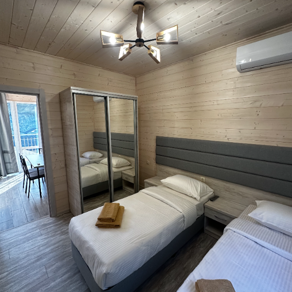 Четырёхместный коттедж 2 отдельные кровати и двуспальная кровать