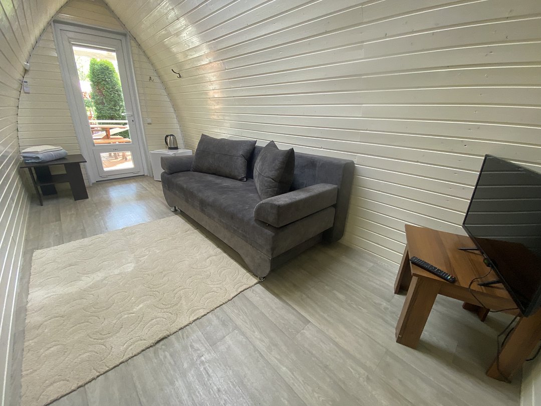 Это компактный и уютный вариант размещения, идеально подходящий для спокойного отдыха вдали от шумных и активных мероприятий комплекса. Внутри находится удобный двуспальный диван, что делает его отличным выбором для пары. Главная особенность Шале — уединённое расположение в собственной тихой зоне, где можно по-настоящему расслабиться и насладиться природой.