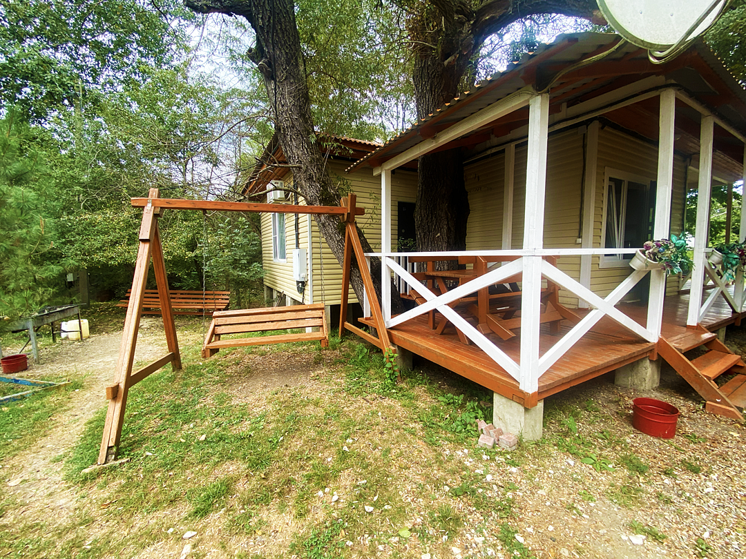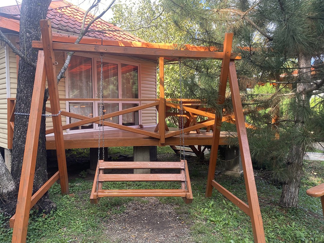 У номера есть собственная небольшая уютная веранда. Рядом расположены качели, мангальная зона для приготовления еды и просторная поляна, подходящая для активных игр, например футбола.