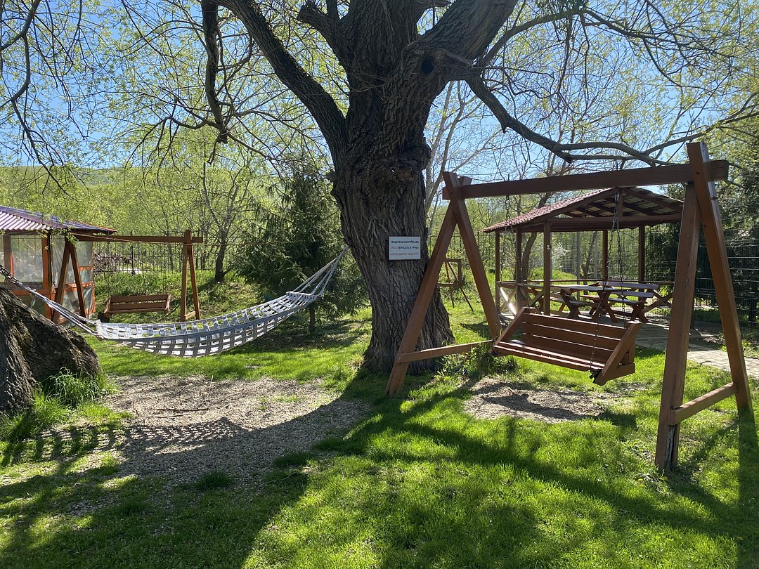 Проживание также включает пользование всей территорией комплекса: гамаками, качелями, батутами, полосой препятствий, песочницей и другими зонами отдыха.