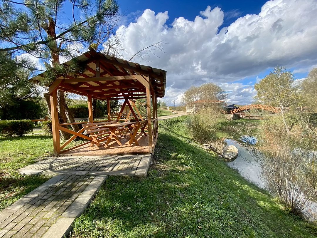 - Уютные беседки для посиделок на свежем воздухе.