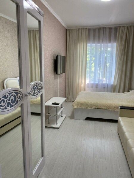 16м2, Двуспальная кровать, шкаф для одежды, тумбочки, пуфик, журнальный столик, телевизор, кондиционер, фен, современный санузел с душем в номере.