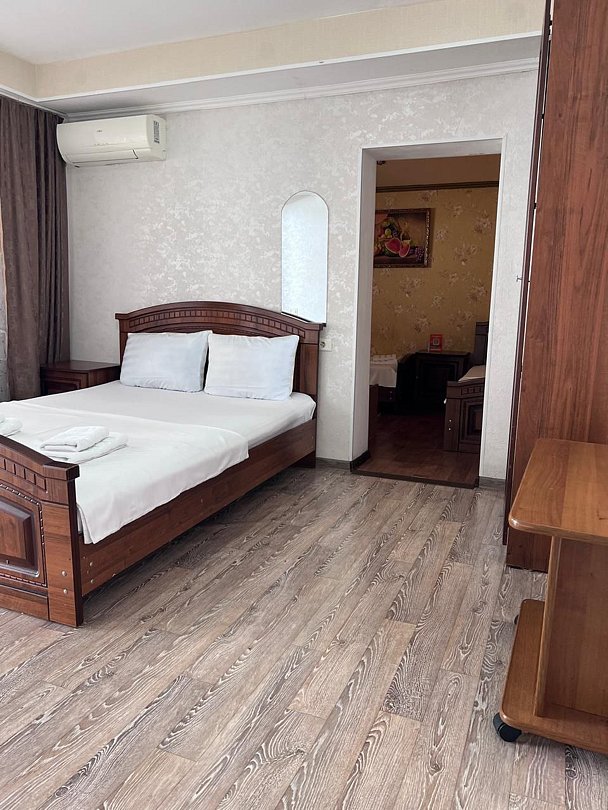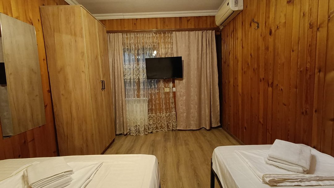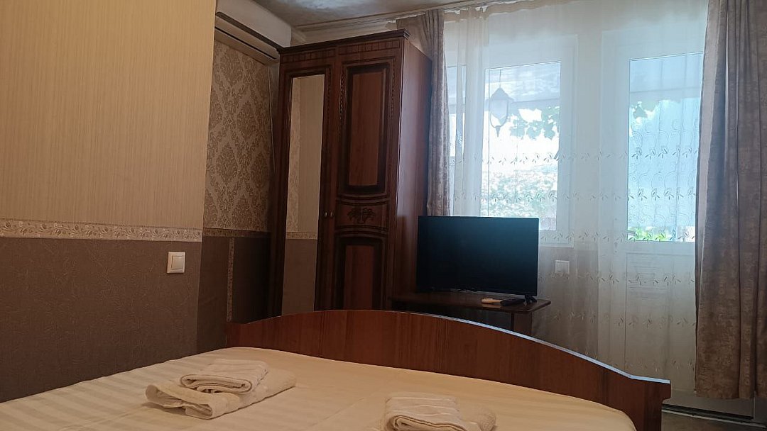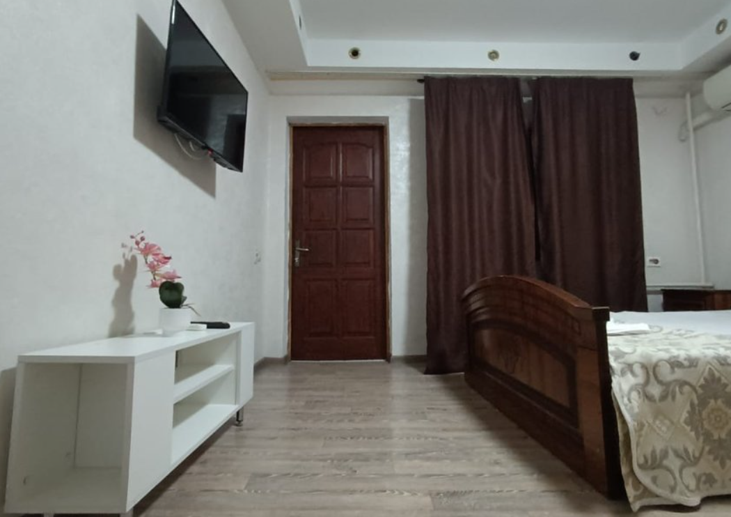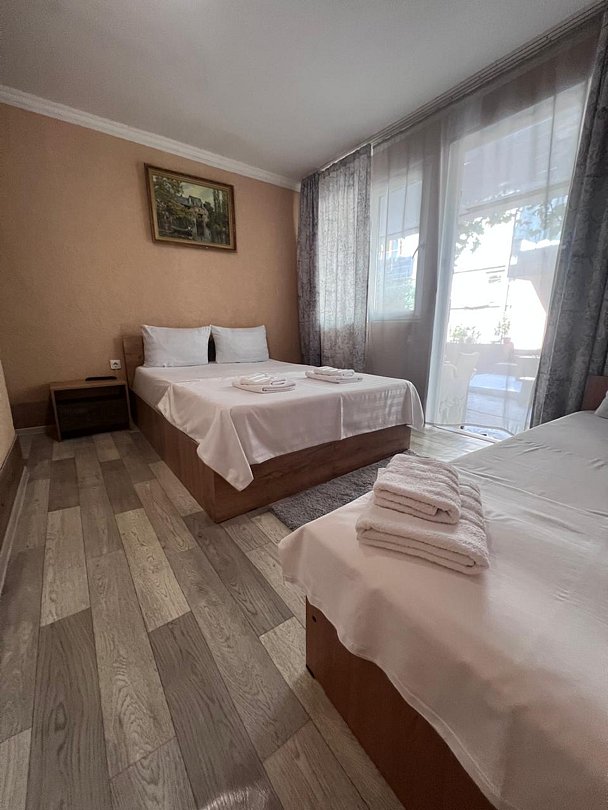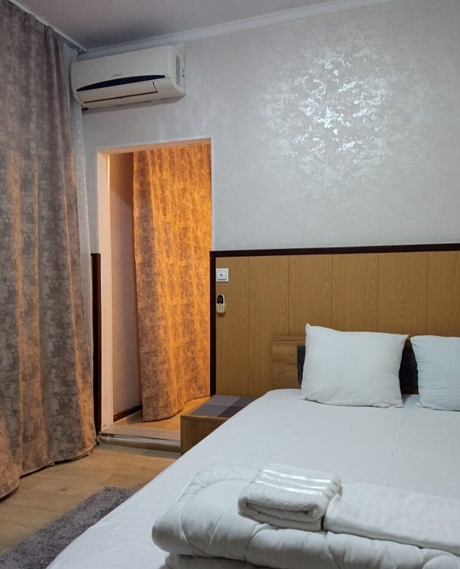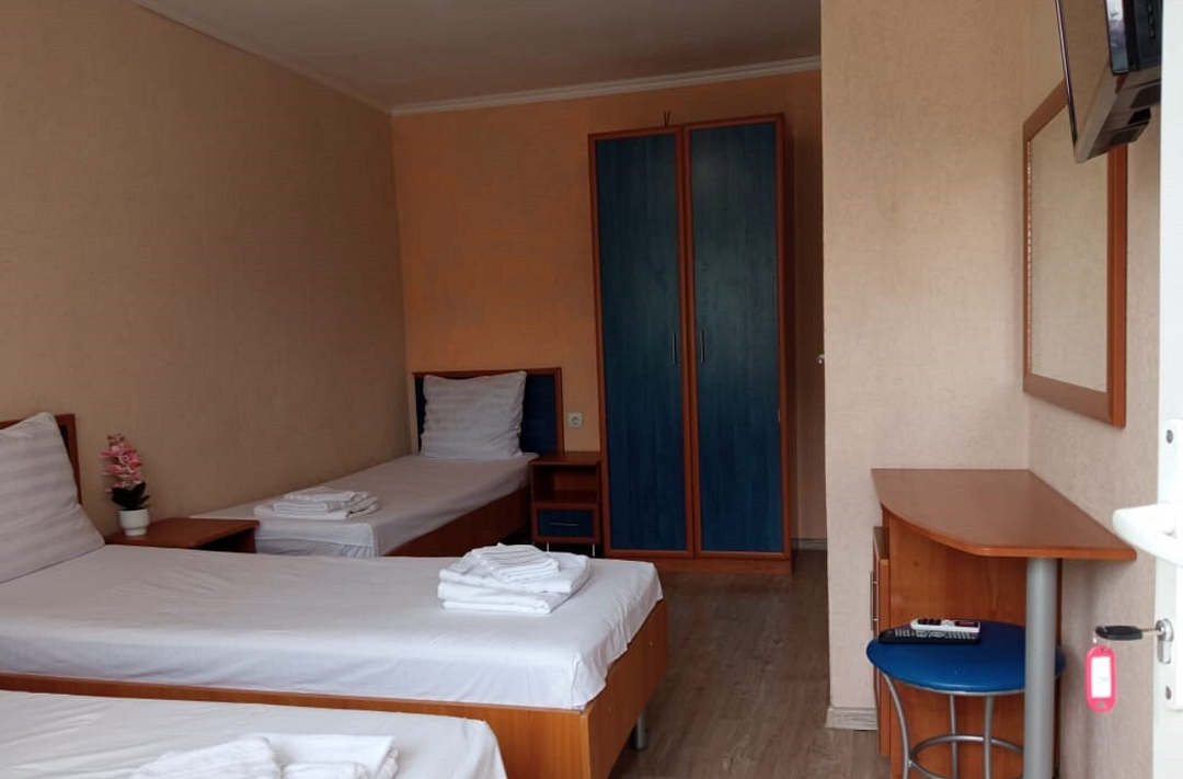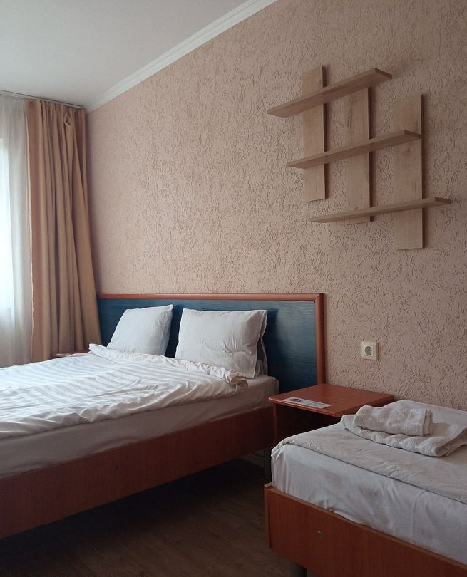Состоит из: 1 двуспальная кровать, туалет, душ, кондиционер, мини-холодильник (не во всех номерах), телевизор, Wi-Fi. Визуально номера могут отличаться, наполнение одинаковое.