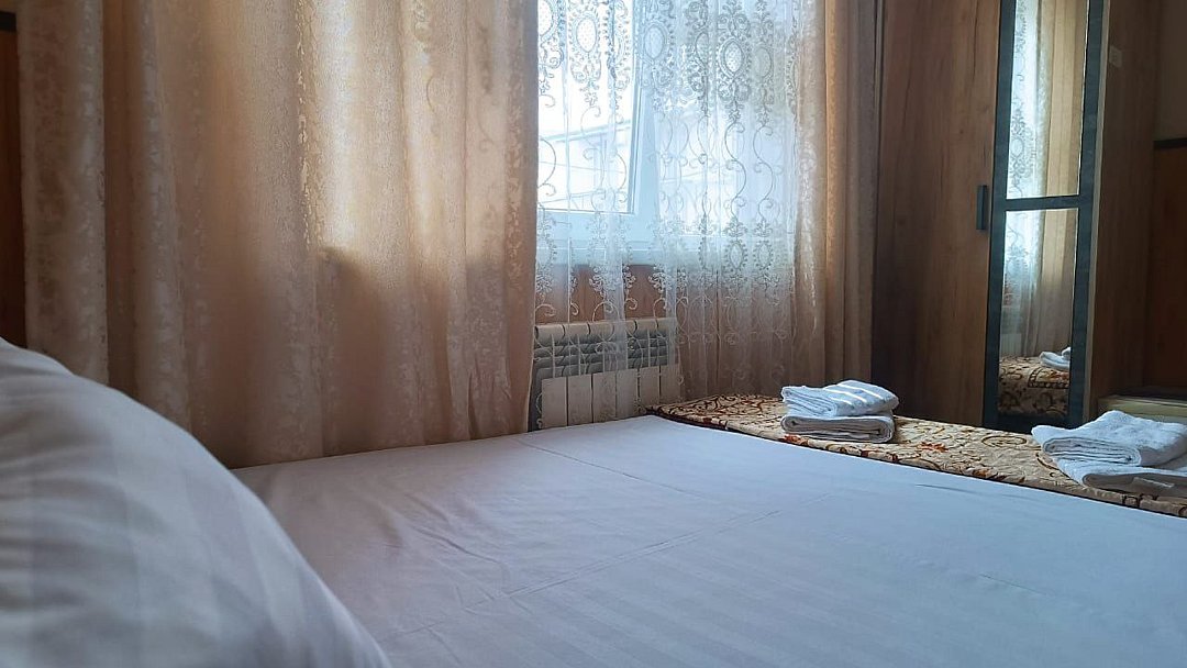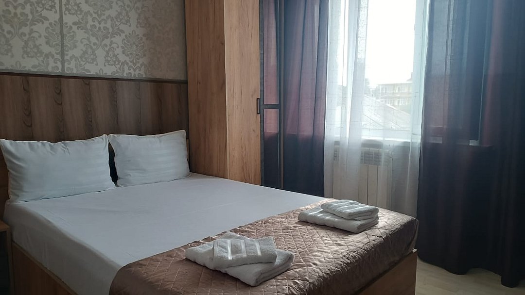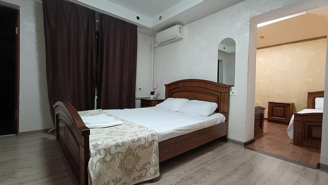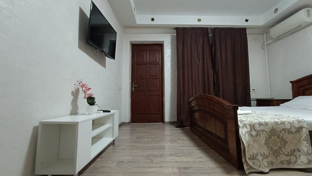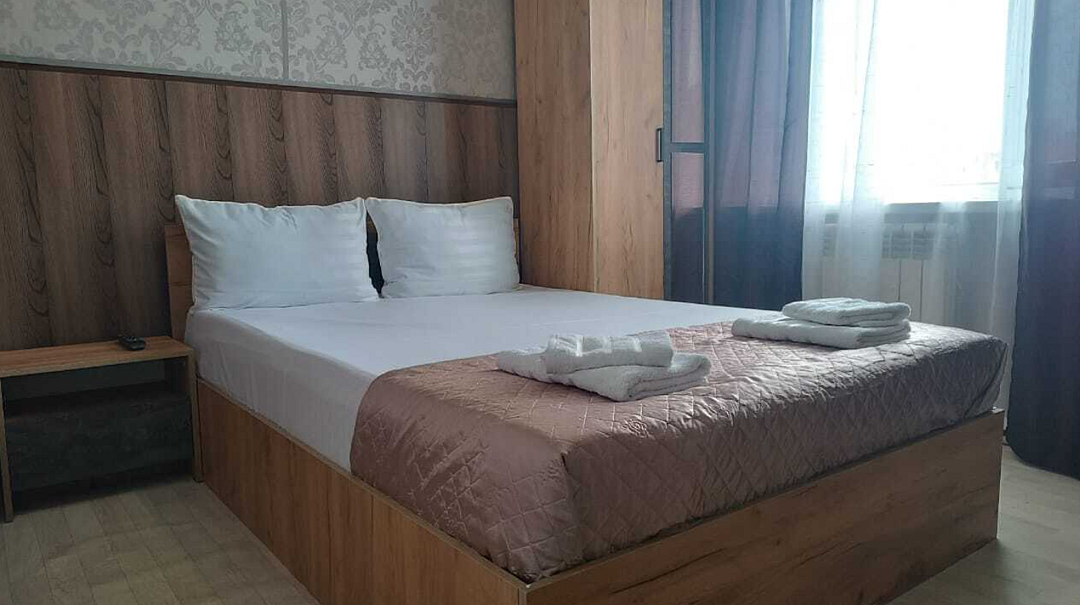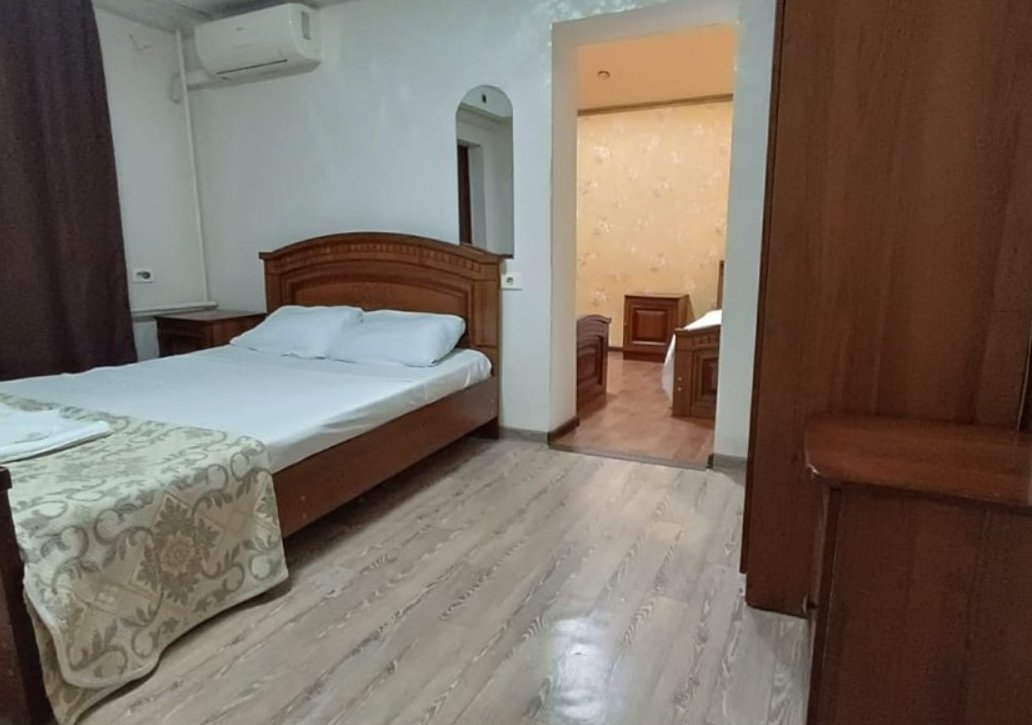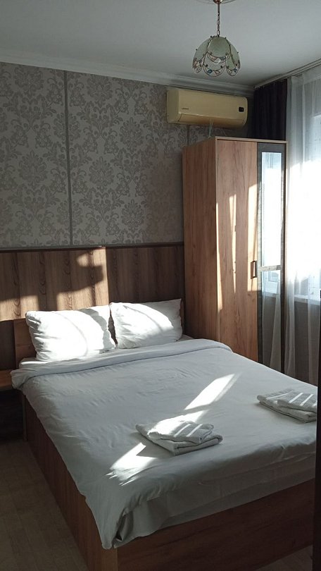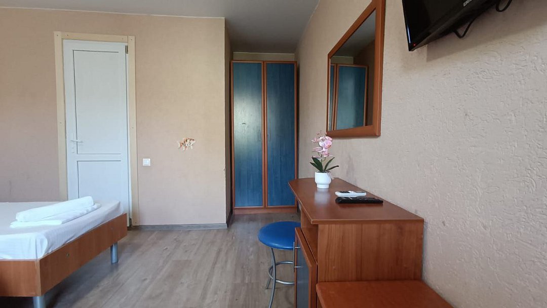 Состоит из: 1 двуспальная кровать, туалет, душ, кондиционер, мини-холодильник (не во всех номерах), телевизор, Wi-Fi. Визуально номера могут отличаться, наполнение одинаковое.