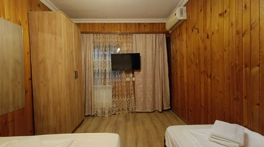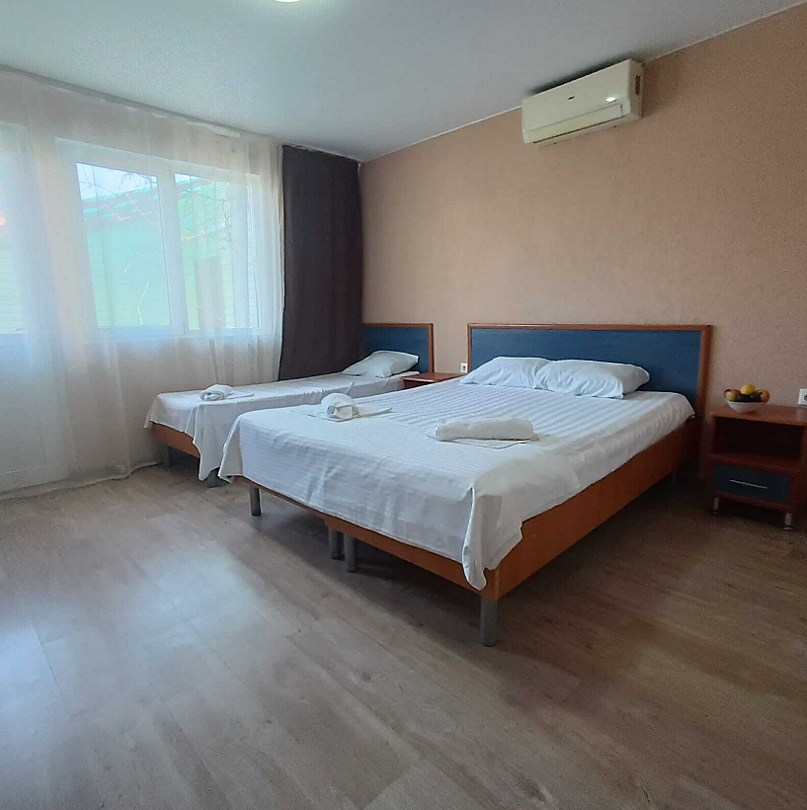 Состоит из: 1 двуспальная кровать, 1 односпальная кровать, кондиционер, телевизор, Wi-Fi.