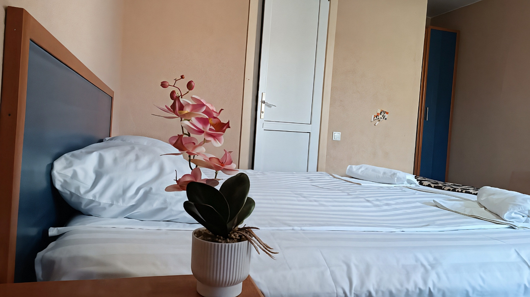 2 Х-МЕСТНЫЙ НОМЕР ЭКОНОМ-КЛАССА состоит из: 2 односпальные кровати, вентилятор (сезонно), телевизор, Wi-Fi.