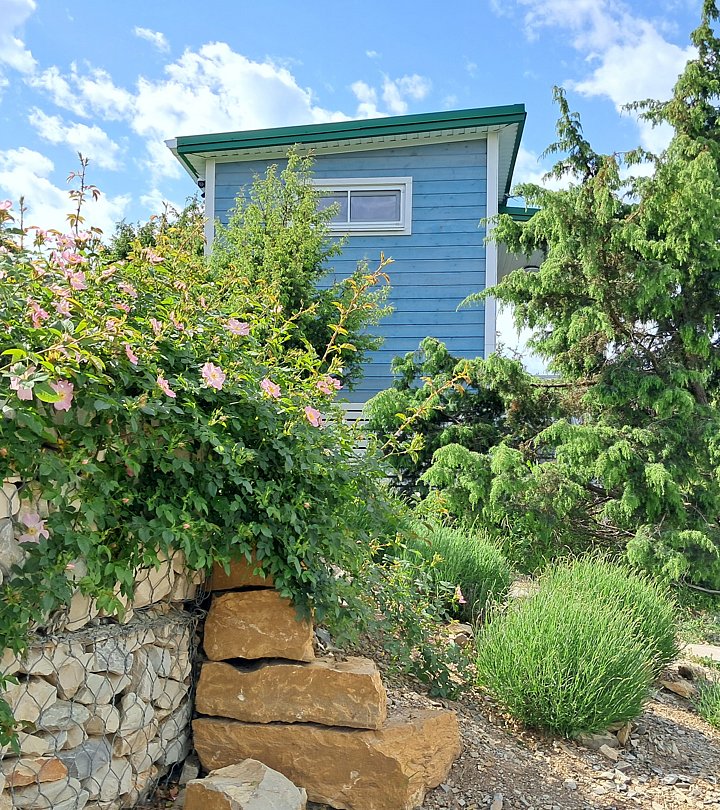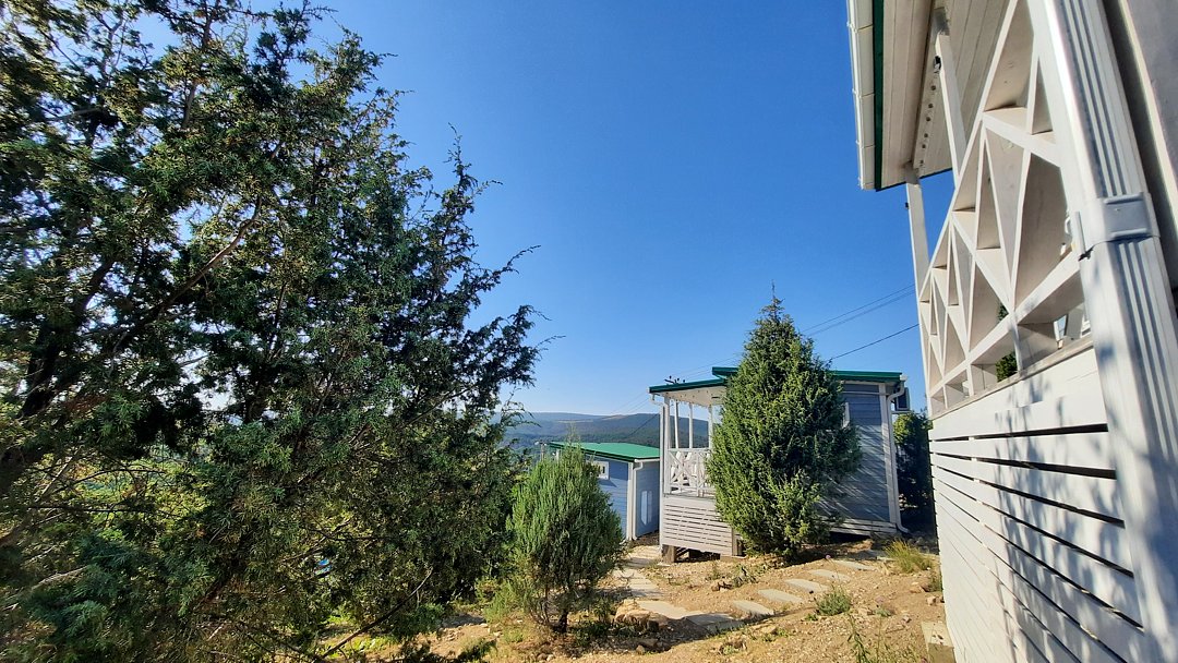 Отель включает в себя три уютных коттеджа, из каждого открываются красивые панорамные виды. В каждом коттедже оборудована спальня, есть собственная функциональная кухня с плитой, холодильником и прочей бытовой техникой, санузел с душевой кабиной и косметическими принадлежностями. Домики окружены зарослям можжевельника, что создает особую атмосферу уединения, а перед коттеджами обустроена просторная видовая терраса.