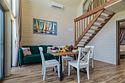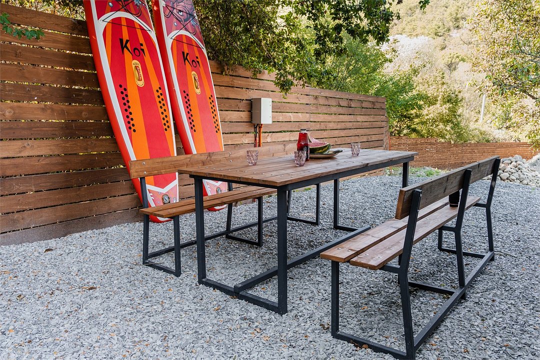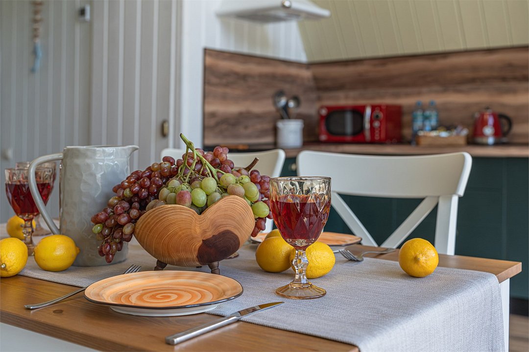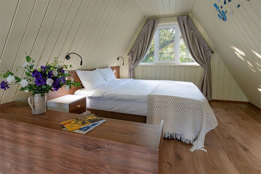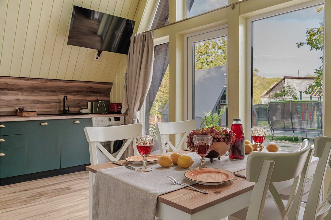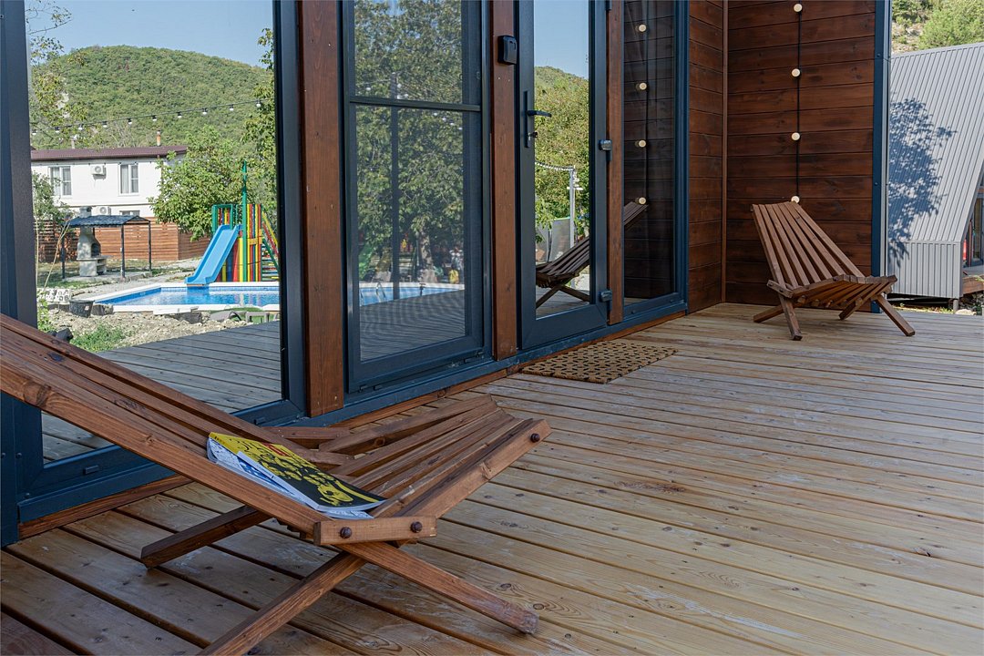 Коттедж "Штурвал" — уютный и просторный дом площадью 61 м², идеально подойдёт для семейного или дружеского отдыха. В коттедже: большая терраса 6 м² спереди и просторная терраса 24 м² сзади, личный задний дворик с уличной мебелью, изолированная спальня на первом этаже, раскладной диван в гостиной, кухня, оборудованная всем необходимым: плита, микроволновка, посудомоечная машина, тостер, электрочайник, посуда, стиральная машина, два кондиционера, раздельный санузел, 4 основных и 2 дополнительных спальных места, парковка на закрытой территории. Коттедж расположен на территории базы отдыха "Теремки", где вас ждут: подогреваемый бассейн, закрытая охраняемая территория, уединённое расположение в горах, чистейший воздух и тишина, всего 10 минут до моря, детская игровая площадка.Услуги и удобства