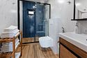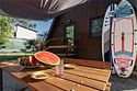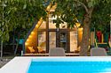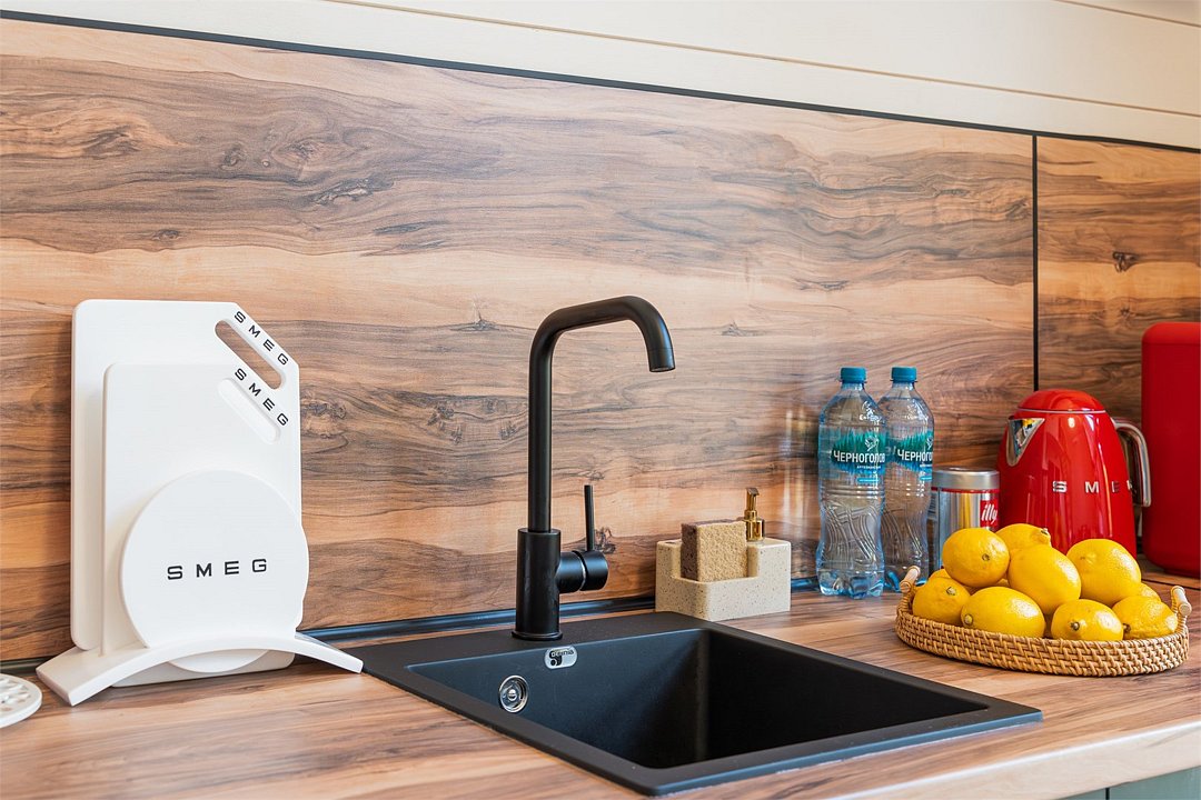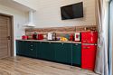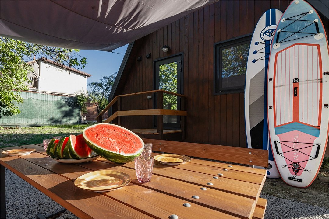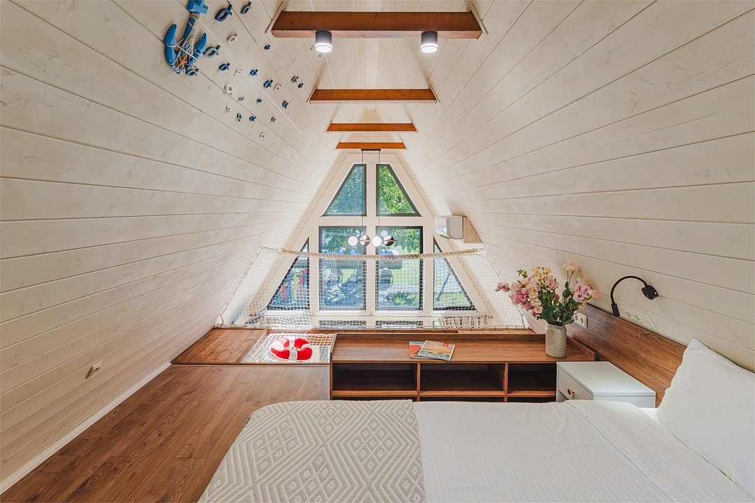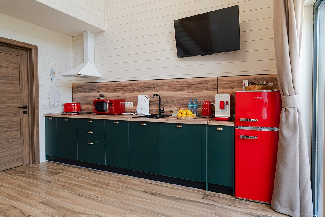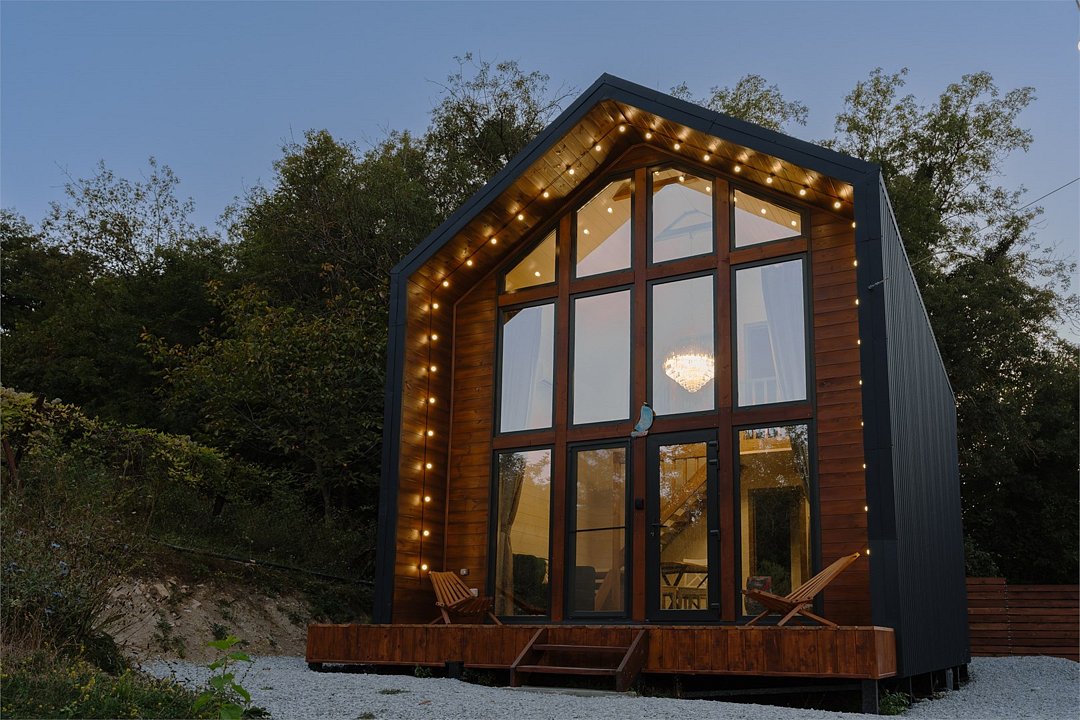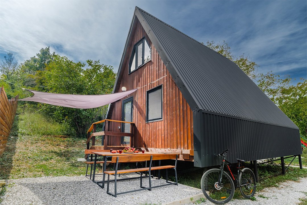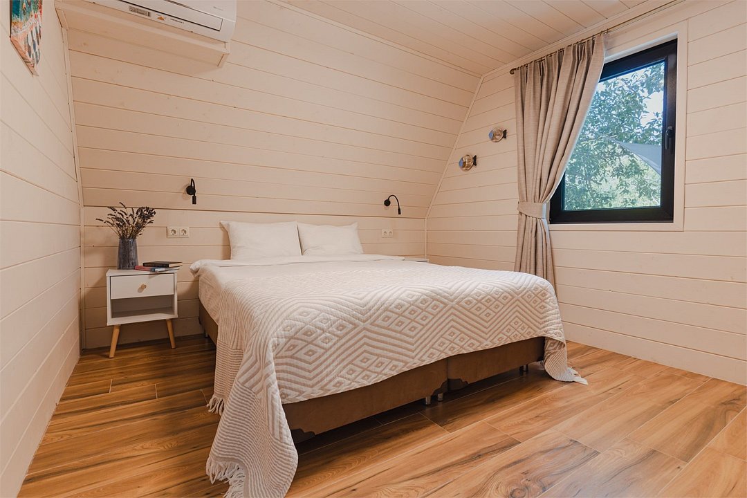 Коттедж "Рыбка" — самый просторный дом на базе отдыха «Теремки», площадью 63 м². Идеально подойдёт для семей с детьми или компаний до 7 человек. В коттедже: терраса 12 м² спереди, большой личный задний двор с уличной мебелью, изолированная спальня на первом этаже, раскладной диван в гостиной, кухня, укомплектованная всем необходимым: плита, микроволновка, посудомоечная машина, тостер, чайник, посуда, стиральная машина, два кондиционера, раздельный санузел, 4 основных спальных места + 2 доп. места + гамак (дополнительное место), парковка на закрытой территории. Коттедж расположен на территории базы отдыха "Теремки", где вас ждут: подогреваемый бассейн, закрытая охраняемая территория, уединённое расположение в горах, чистейший воздух и тишина, всего 10 минут до моря, детская игровая площадка.Услуги и удобства