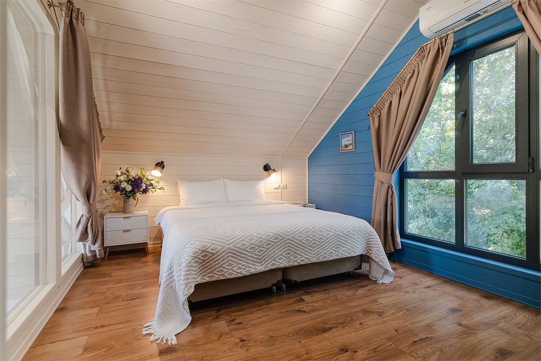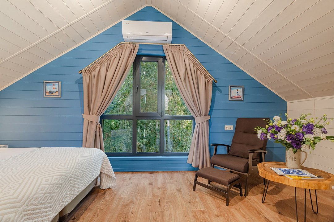 Коттедж "Якорь" — просторный дом площадью 62 м², идеально подойдёт для отдыха семьёй или небольшой компанией. В коттедже: терраса 6 м² спереди, личный задний дворик с уличной мебелью, изолированная спальня на первом этаже, раскладной диван в гостиной, кухня, оснащённая всем необходимым: плита, посудомоечная машина, микроволновка, тостер, электрочайник, посуда, стиральная машина, два кондиционера, раздельный санузел, 4 основных и 2 дополнительных спальных места, парковка на закрытой территории. Коттедж расположен на территории базы отдыха "Теремки", где вас ждут: подогреваемый бассейн, закрытая охраняемая территория, уединённое расположение в горах, чистейший воздух и тишина, всего 10 минут до моря, детская игровая площадка.Услуги и удобства