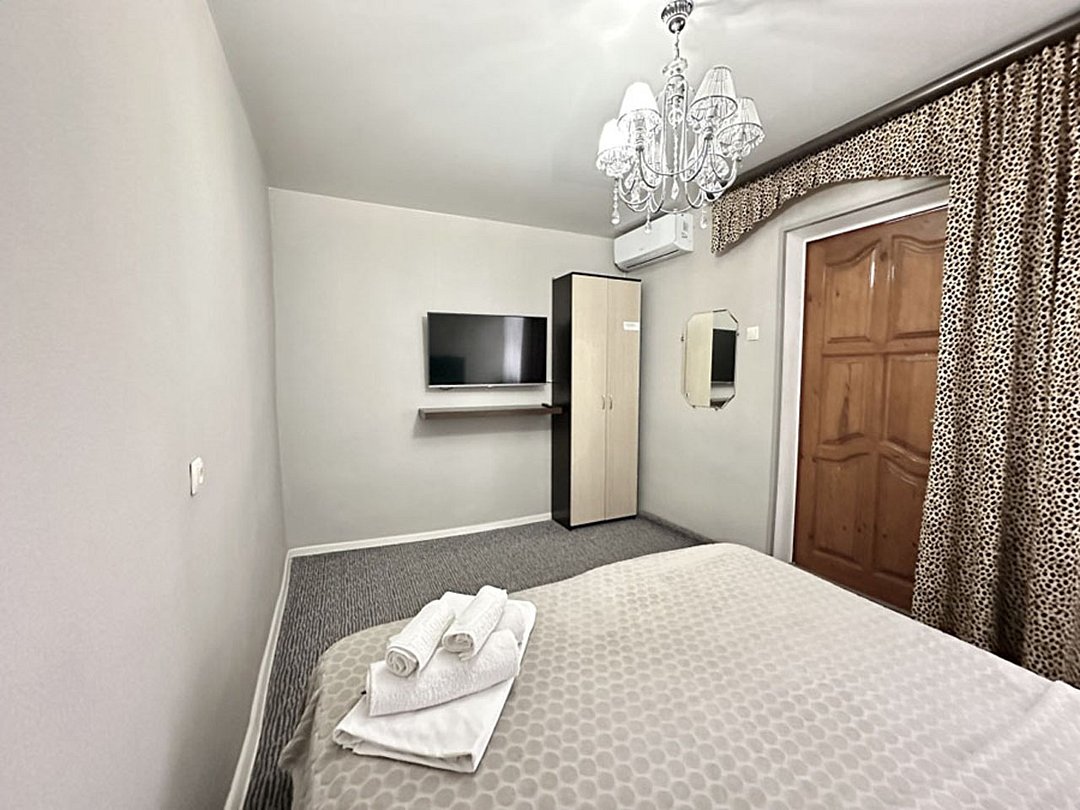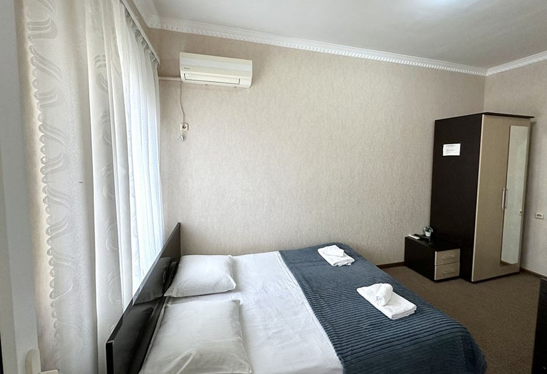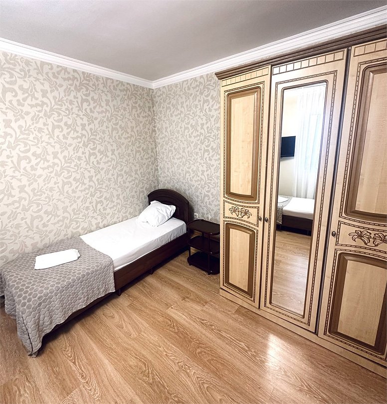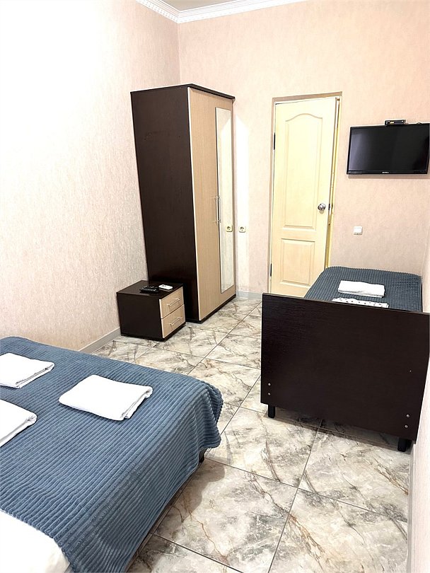 Трехместный номер с двуспальной и односпальной кроватью, мебелью, телевизором, кондиционером и собственным санузломУслуги и удобства