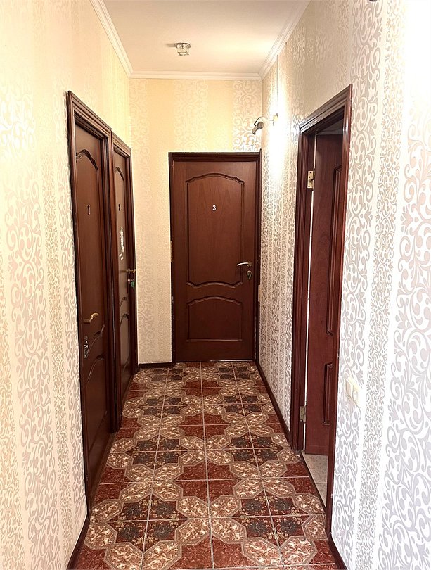 Двухкомнатный номер с двуспальной и двумя односпальными кроватями, мебелью, техникой и собственным санузломУслуги и удобства