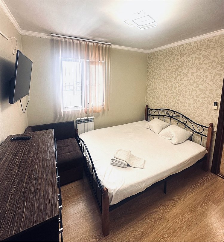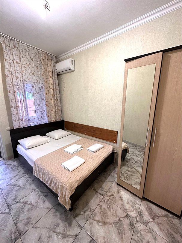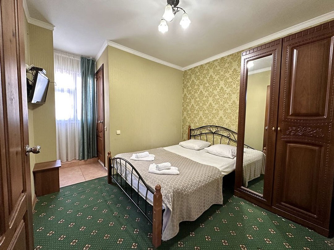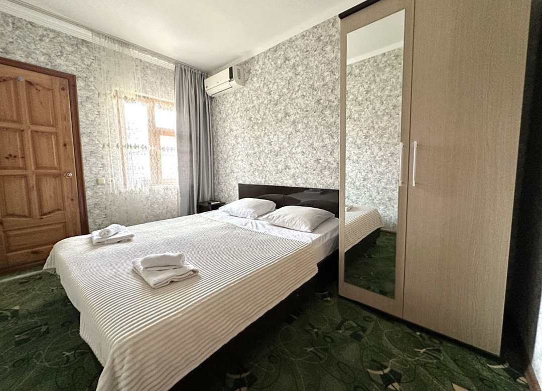Двухместный номер с двуспальной кроватью, мебелью, техникой, санузлом на 2-3 номера. Номера расположены на втором этажеУслуги и удобства