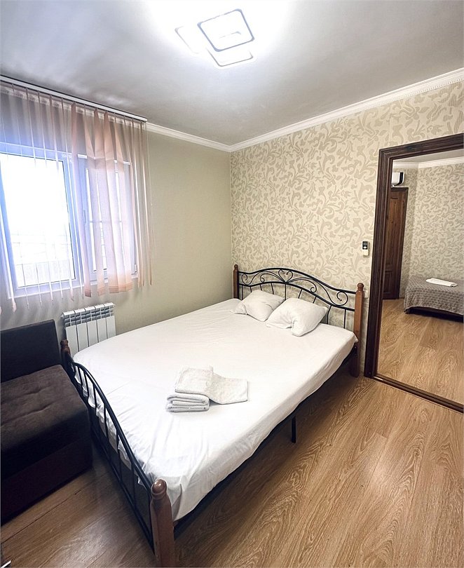 Четырехместный номер с двуспальной кроватью и диваном, мебелью, техникой, кухней, с санузлом на 3 номераУслуги и удобства