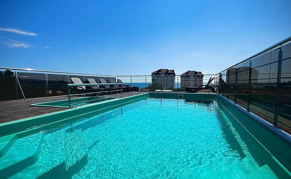 На крыше комплекса расположены открытые подогреваемые бассейны с видом на море: взрослый и детский. Для гостей предоставляются домашние континентальные завтраки, есть камера хранения. Гладильная доска с утюгом расположены на каждом этаже, а кулер с питьевой водой на первом этаже. В 800 метрах от гостевого дома есть платная парковка, недалеко детская площадка. До оборудованного галечного пляжа 400 метров.