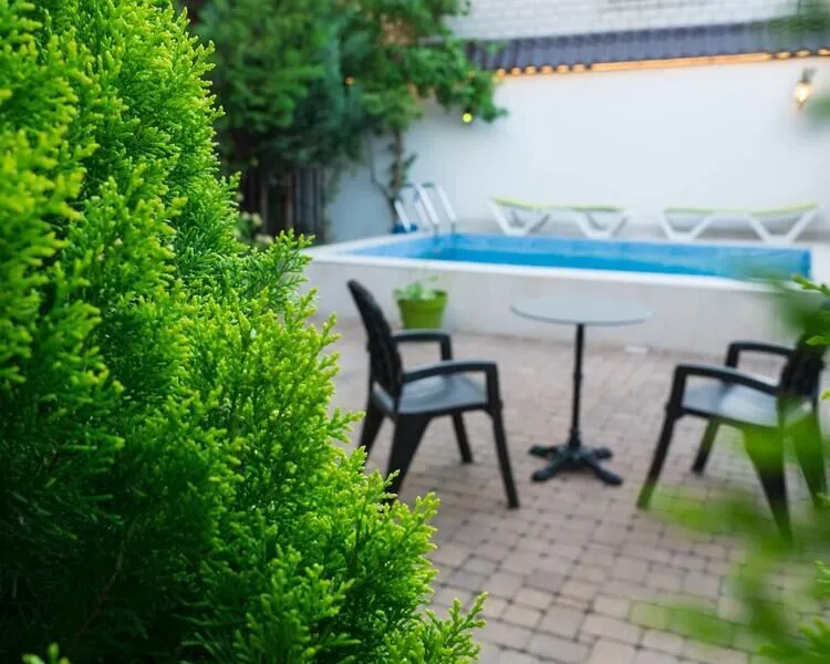 Номера в гостевом доме уютные и чистые, а на территории есть открытый бассейн.