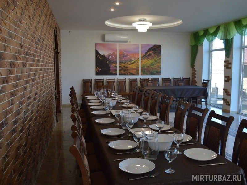 Все коммуникации, отопление, кондиционер, холодильники, посуда, плита, тв, караоке, баня, беседка, мангал, казан, стоянка на территории.
