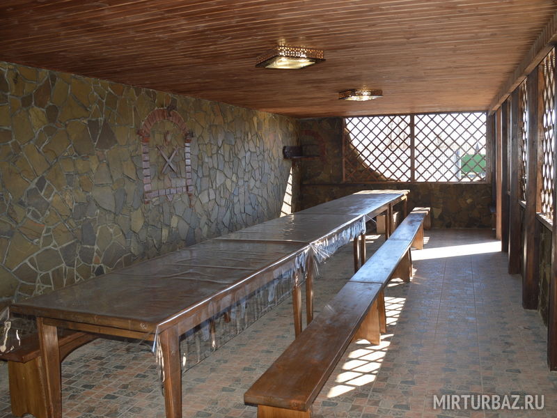 Теперь вы сможете угодить каждому! Потому что на этой базе отдыха найдется все! База находится в живописном местечке недалеко от города с великолепной природой и чистым воздухом. На просторной территории располагается красивейший дом, искусно отделанный природным камнем. Внутри – банкетный зал на 35 человек, оборудованная кухня, 2 санузла и 5 комфортных спален. Во дворе – крытая беседка в той же природной тематике со встроенным мангалом. За столами вы разместите до 40 человек. Рядом сможете приготовить плов в настоящем узбекском казане на 22 литра! И здесь же, чувствуете? Неповторимый аромат древа… Это банька на дровах! Печь заказана по индивидуальному чертежу, поэтому тепло держит восхитительно. На территории есть автостоянка, а из окна – завораживающий вид на реку. Выбирай правильный отдых!