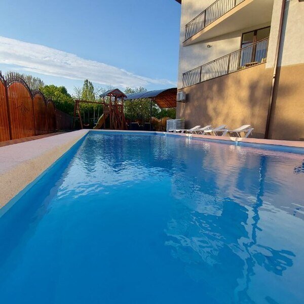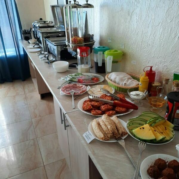 В гостевом доме работает столовая, к услугам отдыхающих уличный бассейн, рядом с которым организована небольшая зона отдыха с шезлонгами. На всей территории доступна сеть wi-fi, а для гостей, приезжающих на машинах, оборудованы парковочные места.