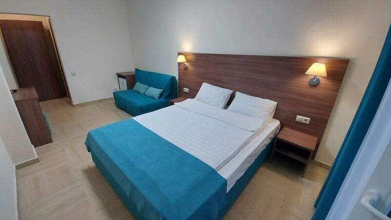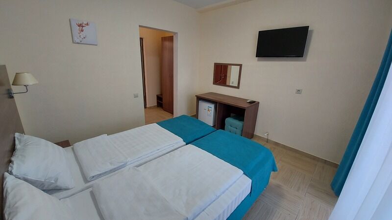 Современный трехэтажный корпус гостевого дома находится на закрытой территории, обнесенной невысоким кованным забором. Гостей ожидают комфортабельные номера разной площади и вместимости. В каждом номере предусмотрен собственный санузел, где для гостей подготовлены косметические наборы, в комнатах есть кондиционеры и техника: холодильник, телевизор.