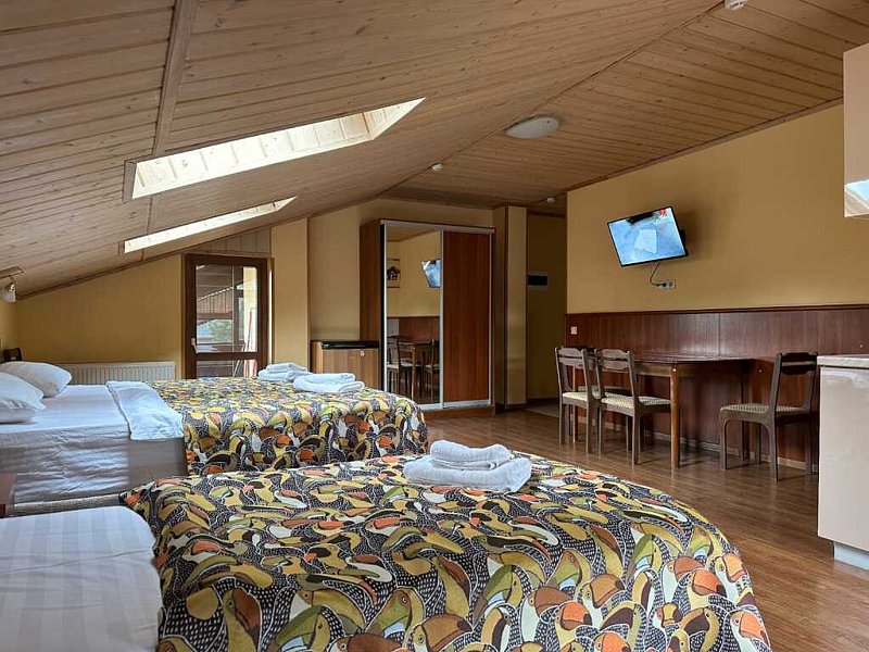 Семейный отдыхДостоинстваНа 5 звёзд, конечно, не тянет, но в номере есть всё, необходимое для жизни. В номерах тихо и очень чисто. Мы приезжали кататься на лыжах, насладились отдыхом на 100%! Отличное питание, особенно завтраки, транспортная доступность. Приветливые сотрудники, особая благодарность Юле с ресепшена.