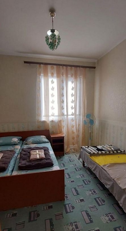 В номере 1 двуспальная кровать, 1 односпальная кровать. Имеется вентилятор, шкаф, вешалка, зеркало, стулья. Общая ванная комната: душ, раковина, туалет, фен.