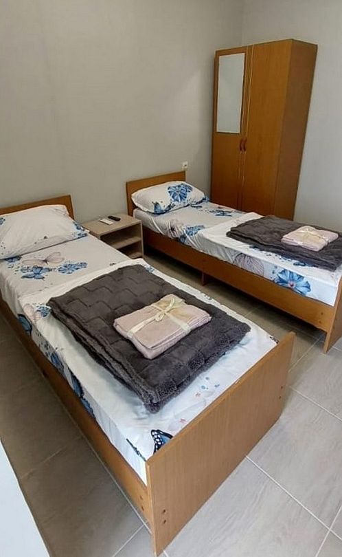 В номере 1 двуспальная кровать или 2 односпальные кровати. Имеется вентилятор, шкаф, вешалка, зеркало, стулья. Общая ванная комната: душ, раковина, туалет, фен.