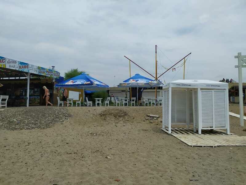 Песчаный пляж на берегу Черного моря расположен в 100 метрах от базы.