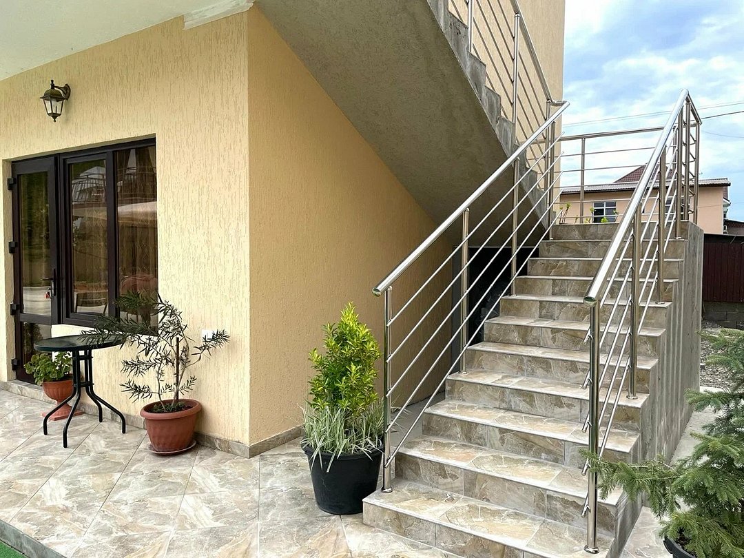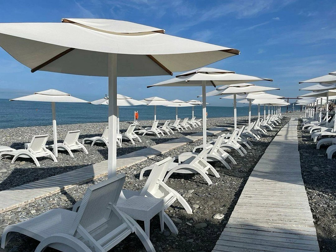 Ближайший галечный пляж, расположенный в 15 минутах пешком, полностью оборудован для комфортного отдыха приезжих.