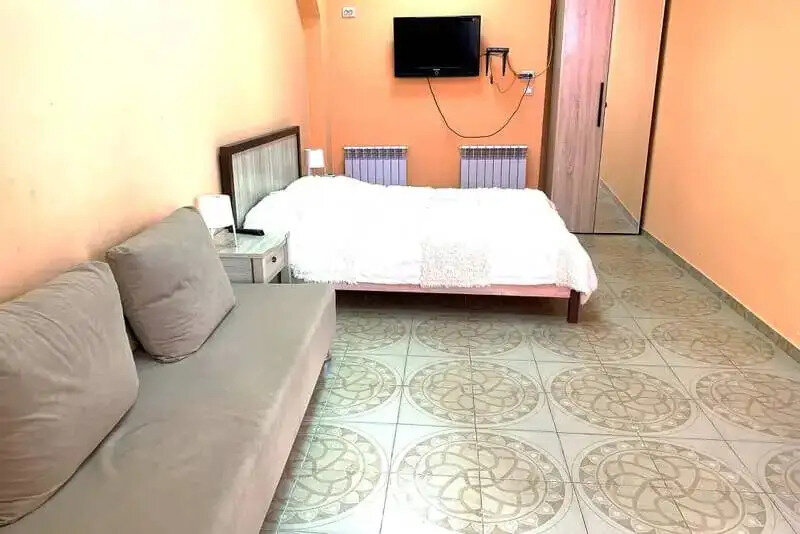 Номер без кондиционера, есть вентилятор. Общий душ и туалет на этаже.