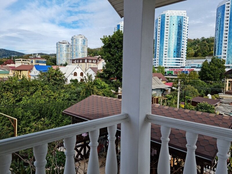 На поезде до ж/д вокзала Адлер, далее на автобусе № 115, 125п, 125с, 50 или маршрутное такси № 117, 134, 60 до остановки «Пансионат Знание», затем пройти 670 м до гостевого дома.