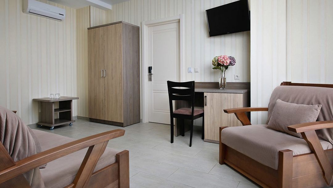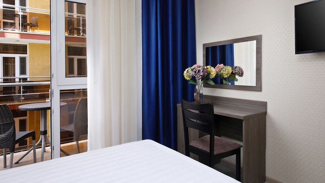 Семейный отдыхДостоинстваЗаслуживает свои 3 звезды на все сто. Приехала сюда осенью, думала, что будет малолюдно, но ошиблась. Здесь тщательно заботятся о красоте, чистоте и уюте. А также о желудках гостей — давно я такую вкусную еду не пробовала. Завтрак полезный и аппетитный. Вдоволь накупалась в бассейне. Температура воды очень комфортная. Также порадовала такая приятная мелочь, как возможность посушить вещи на балконе