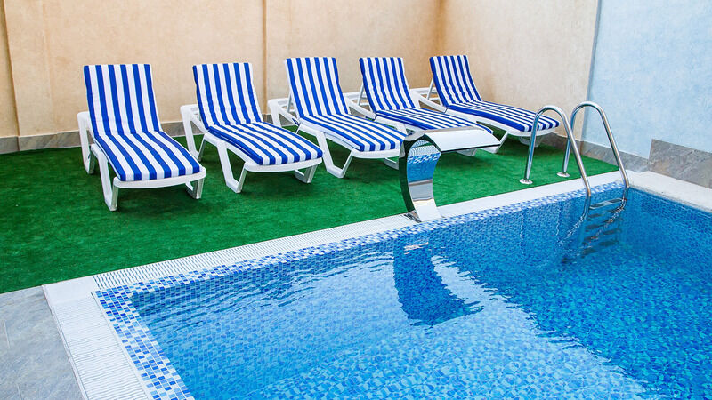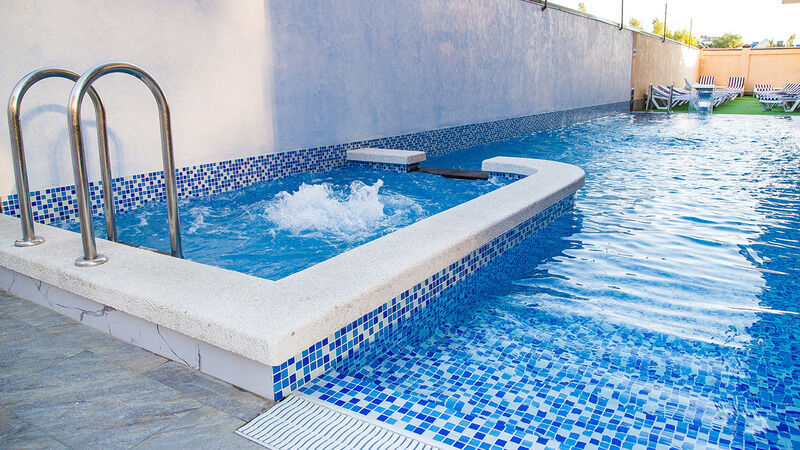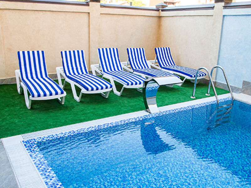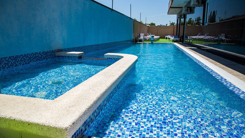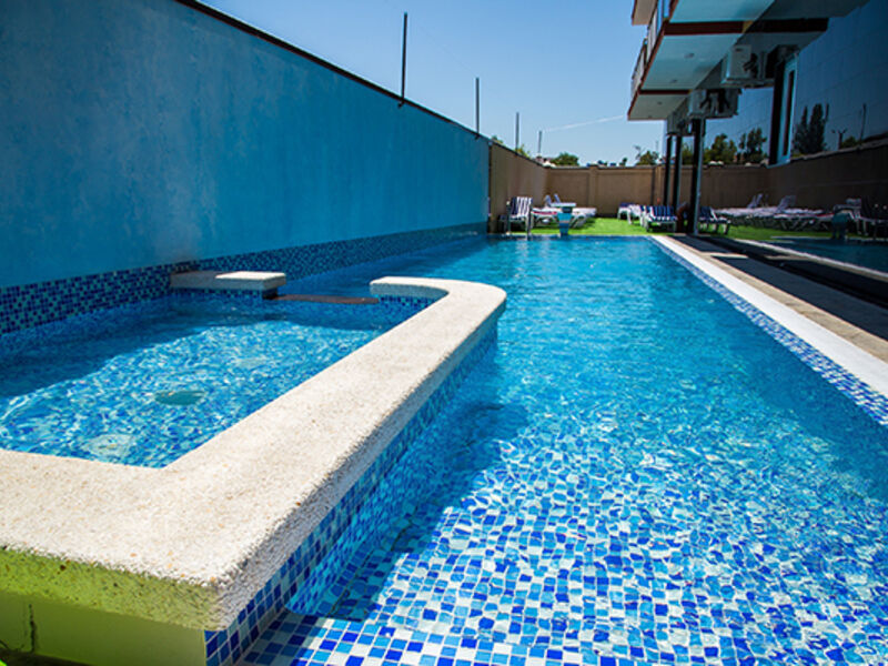 Тип бассейна: открытый бассейнВода в бассейне: подогреваемый бассейнРядом с бассейном: шезлонгиНа территории пансионата размещены два открытых бассейна, каждый из которых обладает отдельной детской зоной. Бассейны оборудованы гидромассажем и гейзерами. В вечернее время работает красочная подсветка бассейнов.