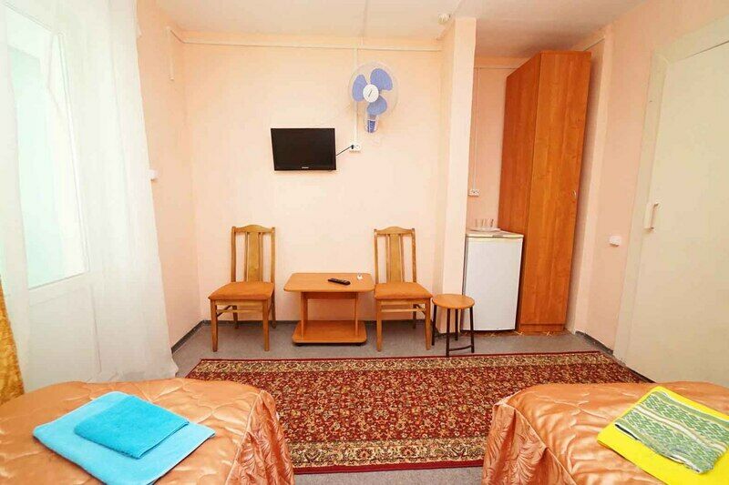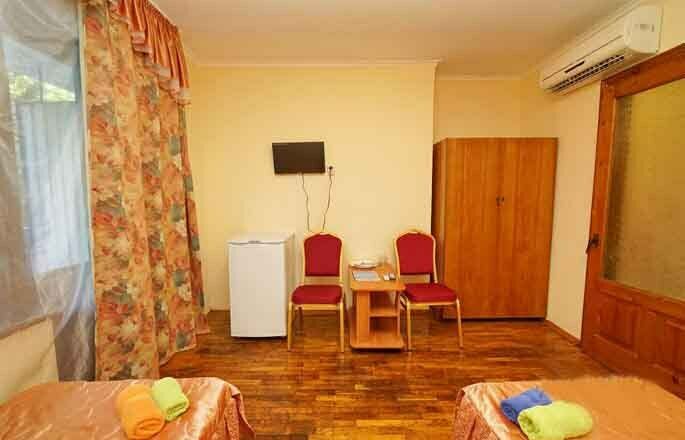 3-х местный номер (2+1) (около 12 кв. м) – с удобствами (с/у + душ), холодильник, телевизор, без балкона, оснащен вентилятором. Всего 12 номеров.