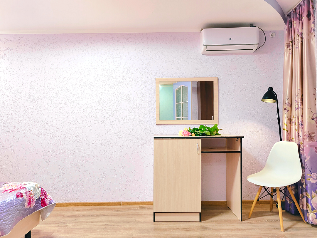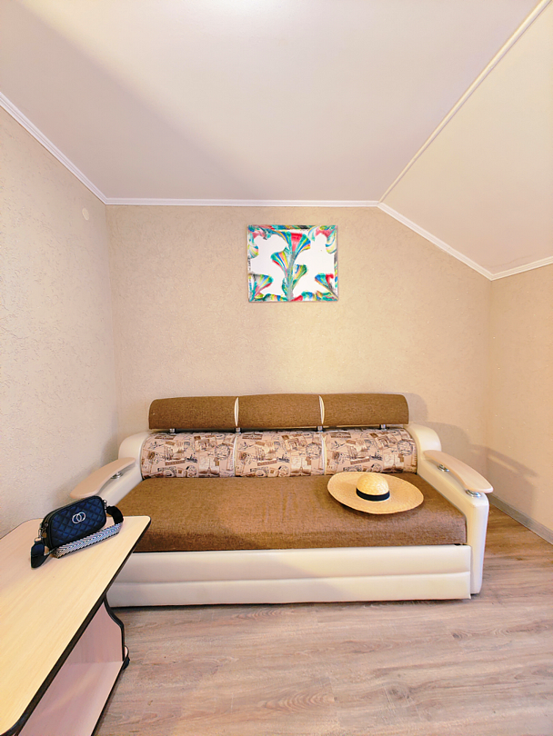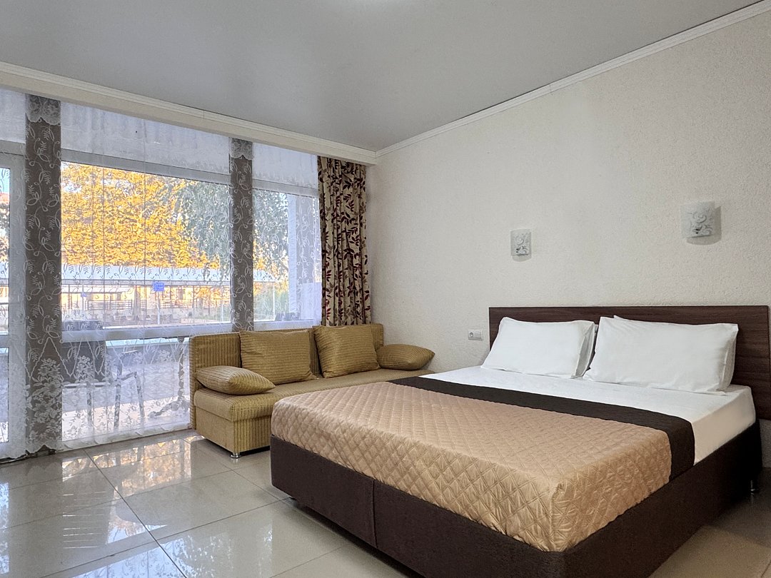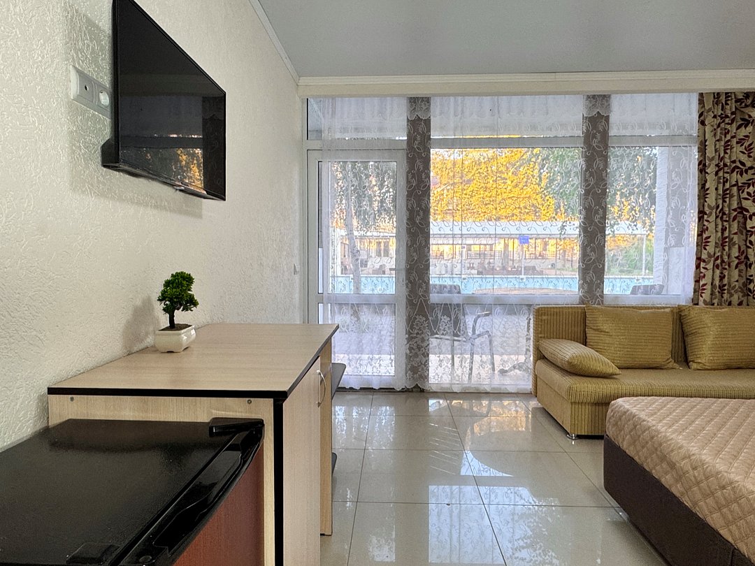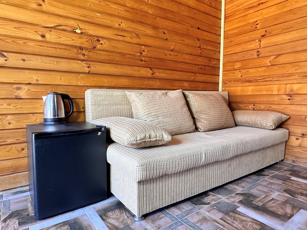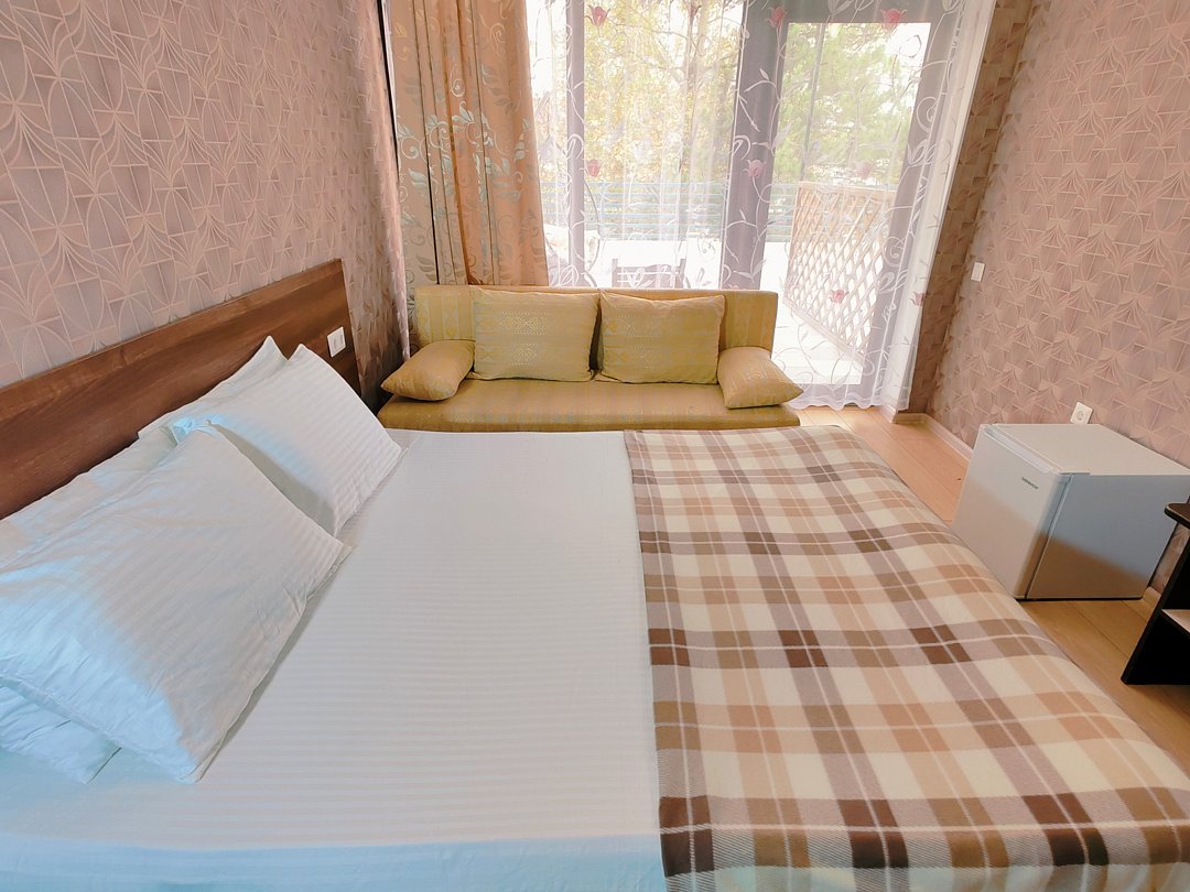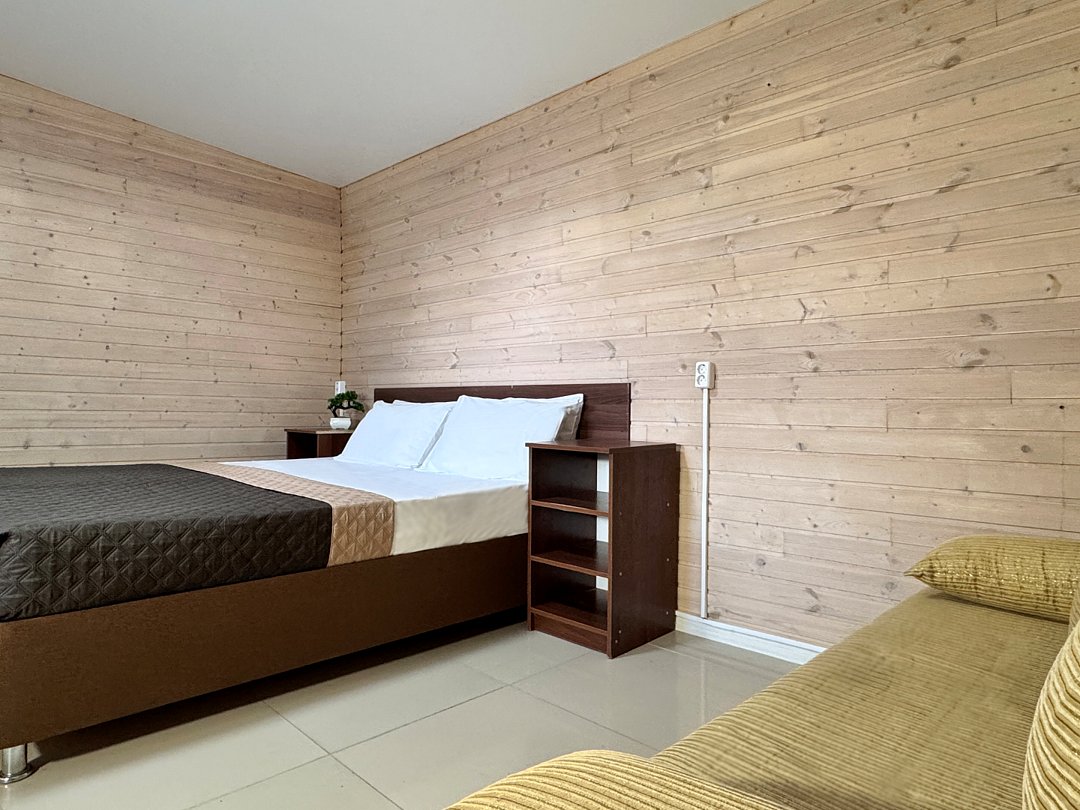 В номере: двуспальная кровать, двуспальный диван, прикроватные тумбочки,журнальный столик, шкаф,вешалки,зеркало, телевизор, кондиционер, мини-холодильник, электрочайник, набор посуды. Ванная комната: душ, раковина, зеркало, туалет, сушилка для одежды. Индивидуальная зона отдыха с отдельным входом в номер. (Проживание с животными разращено до 10 кг)В номере: двуспальная кровать, двуспальный диван, прикроватные тумбочки,журнальный столик, шкаф,вешалки,зеркало, телевизор, кондиционер, мини-холодильник, электрочайник, набор посуды. Ванная комната: душ, раковина, зеркало, туалет, сушилка для одежды. Индивидуальная зона отдыха с отдельным входом в номер.