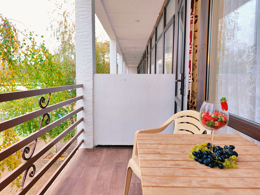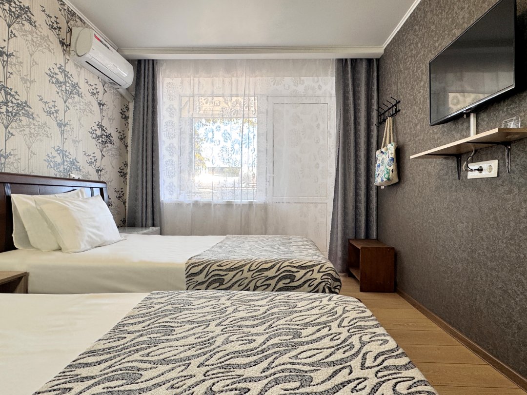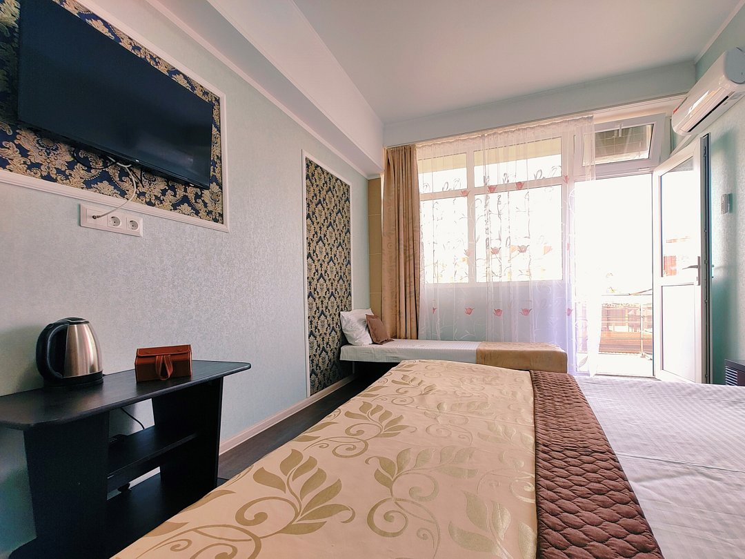 В номере: Двуспальная кровать, односпальная кровать или двуспальная кровать и односпальный диван, прикроватные тумбочки,журнальный столик, шкаф,вешалки,зеркало, телевизор, кондиционер, мини-холодильник, электрочайник, набор посуды. Ванная комната: душ, раковина, зеркало, фен, туалет, сушилка для одежды. Балкон с летней мебелью (Проживание с животными запрещено)В номере: Двуспальная кровать,односпальная кровать или двуспальная кровать и односпальный диван, прикроватные тумбочки,журнальный столик, шкаф,вешалки,зеркало, телевизор, кондиционер, мини-холодильник, электрочайник, набор посуды. Ванная комната: душ, раковина, зеркало, фен, туалет, сушилка для одежды. Балкон с летней мебелью