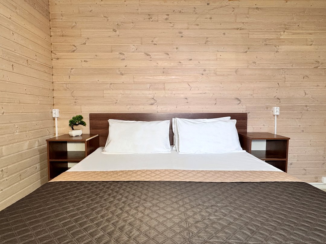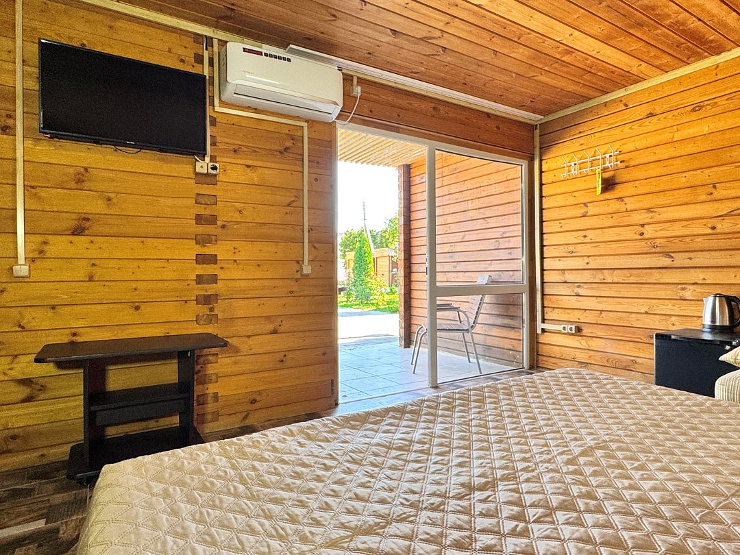 В номере: двуспальная кровать, прикроватные тумбочки,журнальный столик, комод, шкаф,вешалки,зеркало, телевизор, кондиционер, мини-холодильник, электрочайник, набор посуды. Ванная комната: душ, раковина, зеркало, туалет, сушилка для одежды. Зона отдыха перед входом в номер. (проживание с животными запрещено)В номере: двуспальная кровать, прикроватные тумбочки,журнальный столик, шкаф,вешалки,зеркало, телевизор, кондиционер, мини-холодильник, электрочайник, набор посуды. Ванная комната: душ, раковина, зеркало, туалет, сушилка для одежды. Индивидуальная зона отдыха с отдельным входом в номер.