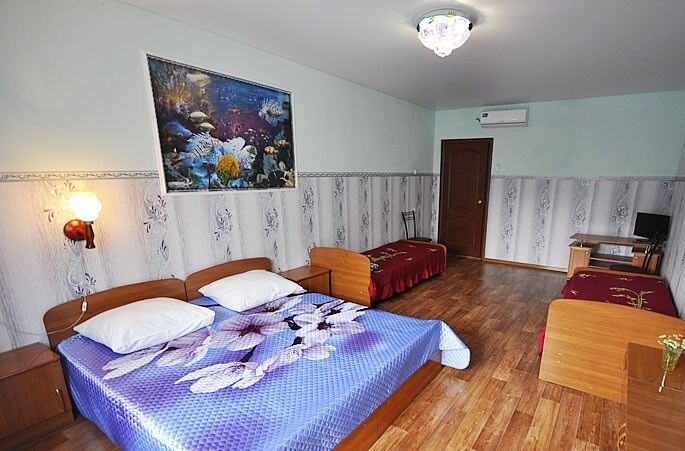 Двухспальная и две односпальные кровати, прикроватные тумбочки, стол, стулья, вешалка, холодильник, телевизор, кондиционер