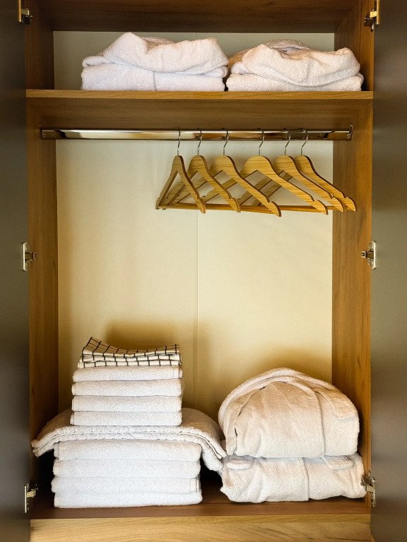 Чтобы вы могли отдохнуть после долгого дня, в номере есть телевизор и халат. Оснащение зависит от выбранной категории номера.