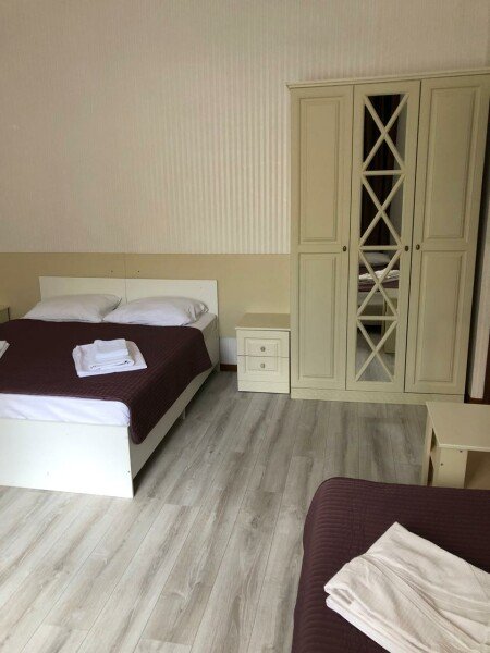 Однокомнатный трехместный номер в корпусе с номерным фондом Ассорти. В номере: двуспальная и односпальная кровати, шкаф, две прикроватные тумбочки, трюмо. Общий санузел на этаже. Уборка и смена постельного белья входят в стоимость номера.