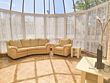 2-х этажный дом «Сфера 2» с одной спальней. На первом этаже кухня-столовая, санузел, купольный бар. На втором этаже: прихожая, гостиная, спальня, санузел с душевой кабиной. В гостиной: диван и телевизор.