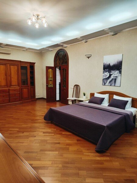 В первой спальне: двухспальная кровать и односпальная кровать, шкаф, две прикроватные тумбочки, трюмо. Во второй спальне: балкон, двухспальная кровать и односпальная кровать, шкаф , прикроватные тумбочки, трюмо. Уборка и смена постельного белья входят в стоимость номера.
