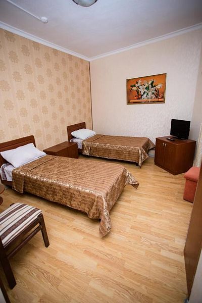 Стандартный номер со всеми удобствами. В номере две односпальные кровати или одна двуспальная.