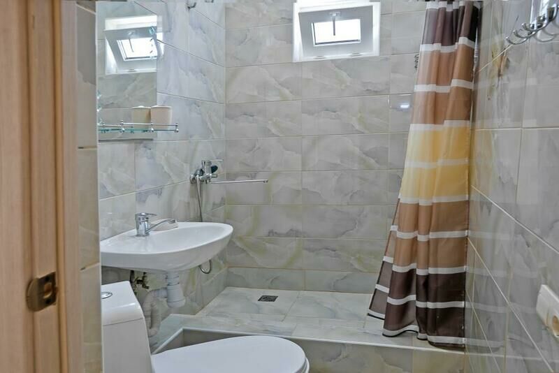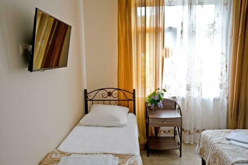 Комфортный номер для проживания троих человек. Номер оснащен кондиционером, холодильником, телевизором, просторным санузлом. Из окон номера вид во двор.