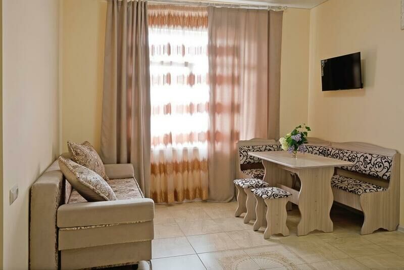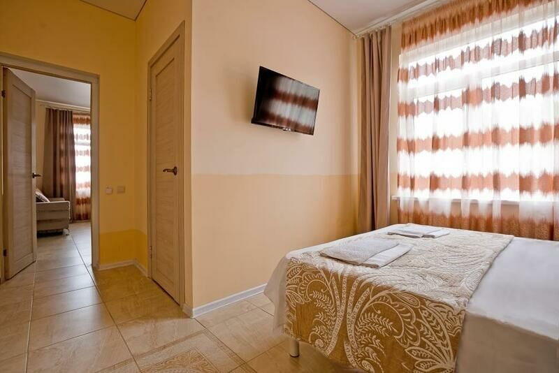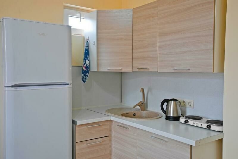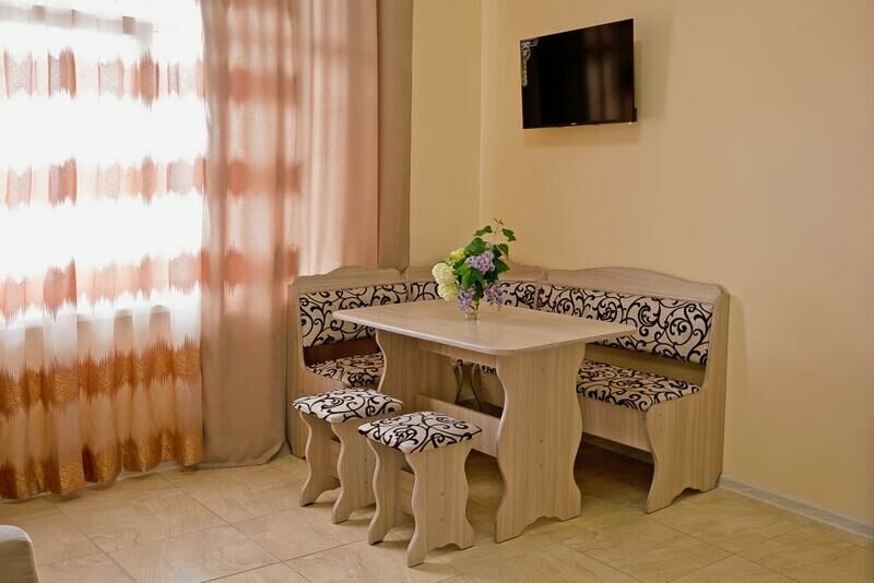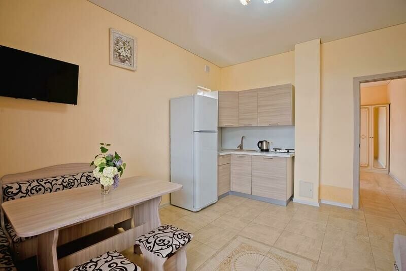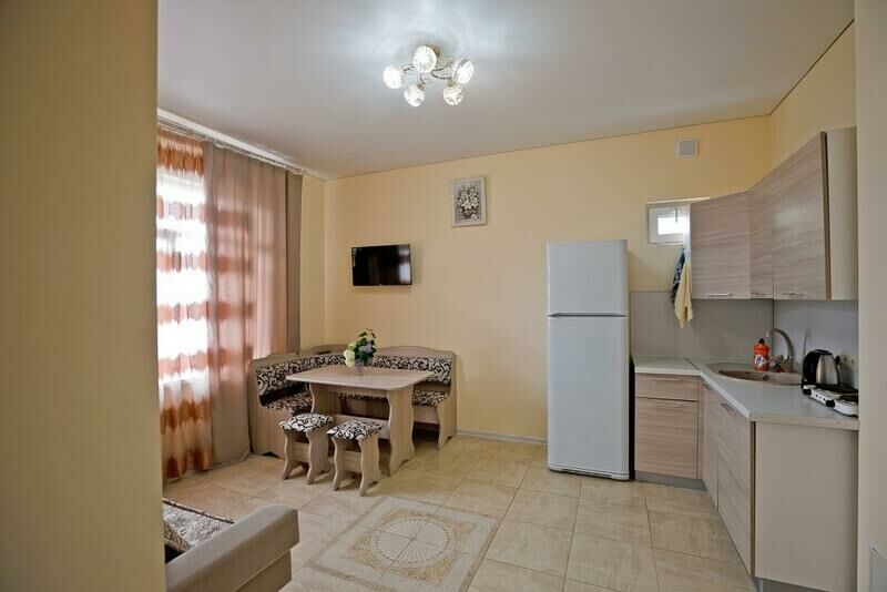 Комфортный номер для проживания 4 человек. Номер оснащен кондиционером, холодильником, телевизором, просторным санузлом. В кухне есть все необходимое для приготовления еды.
