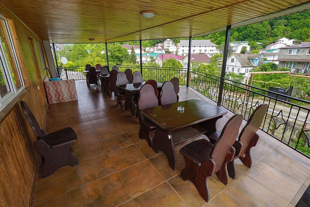Для удобства отдыхающих на втором этаже организована общая кухня, есть просторные веранды на втором и третьем этажах. Во дворике организована мангальная зона, среди прочих услуг – безлимитный интернет, прачечная и багажная комната.