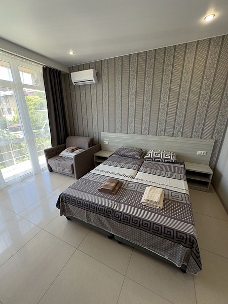 Семейный отдыхДостоинстваУдобное расположение недалеко от пляжа и центра города, неплохие номера, вежливый персонал. Есть возможность проживания с домашними питомцами. Общее впечатление хорошее, рекомендуем.