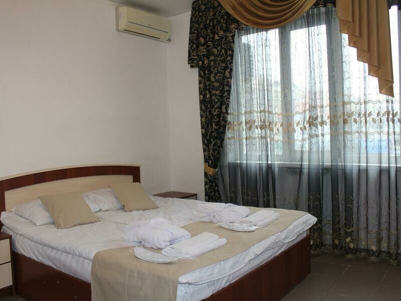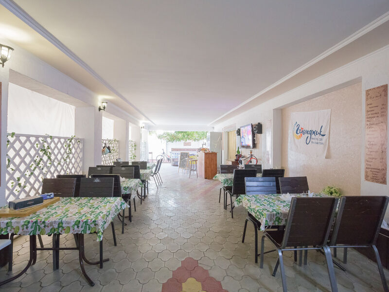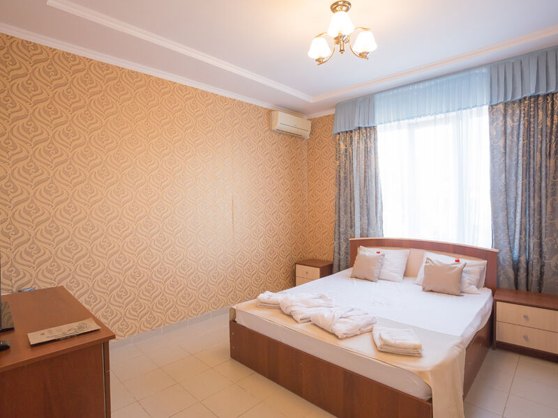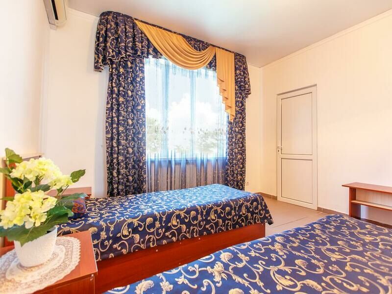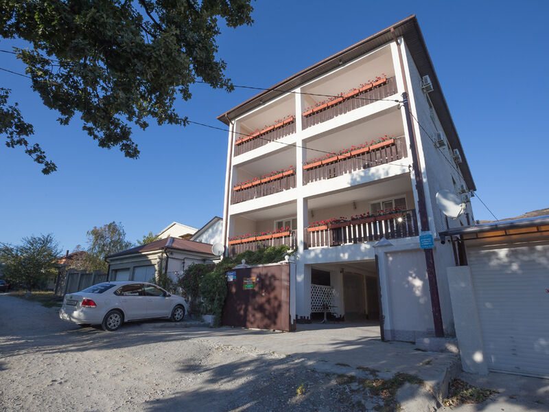 Гостей здесь принимают круглый год. Трехэтажный отель с меблированными лоджиями-террасами окружен капитальным каменным забором и располагает закрытой автостоянкой. Общие лоджии — террасы расположены на каждом этаже отеля, оттуда открывается шикарный вид на море, они оборудованы столиками, диванами. В номерах есть все удобства. В распоряжении проживающих – номера категории стандарт расположенные на 1 (высокий цоколь) и 2 этажах отеля; ванная комната с холодной и горячей водой, холодильник, кондиционер, телевизор, электрический чайник; качественная деревянная мебель: односпальные и двуспальные кровати, рабочие и туалетные столы, комоды, тумбочки и шкафы с зеркалами в полный рост. На третьем этаже отеля располагаются семейные стандартные двухкомнатные номера с мини кухней (холодильник, микроволновая печь, небольшая двухкомфорочная плита, набор посуды, электрический чайник) — две комнаты в каждой из них душ и туалет.