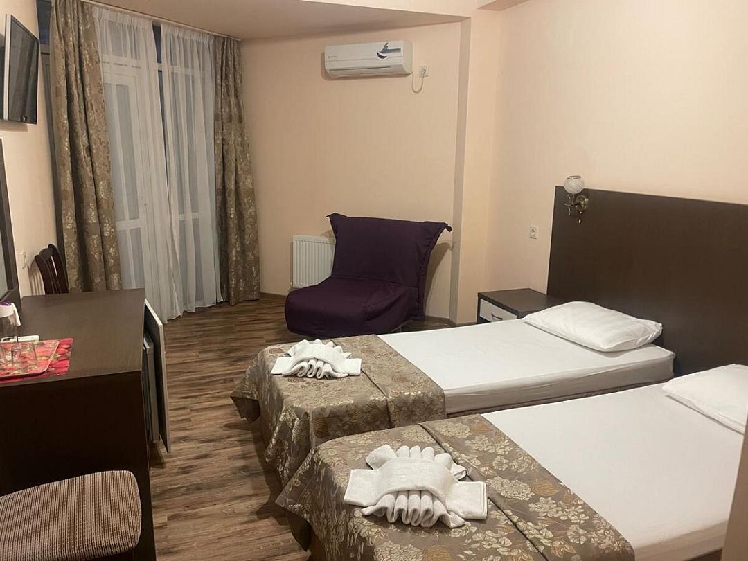 Здание находится под видеонаблюдением. Уборка номеров каждый день, смена постельного белья и полотенец один раз в три дня. Все номера с балконами.